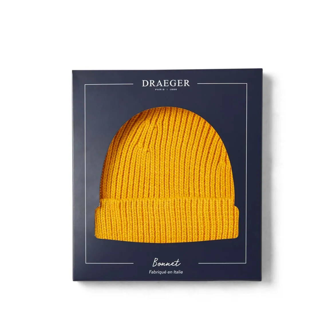 Gardez un look élégant et décontracté pendant l’automne-hiver et choisissez ce joli bonnet jaune moutarde en maille côtelée fabriqué en Italie !