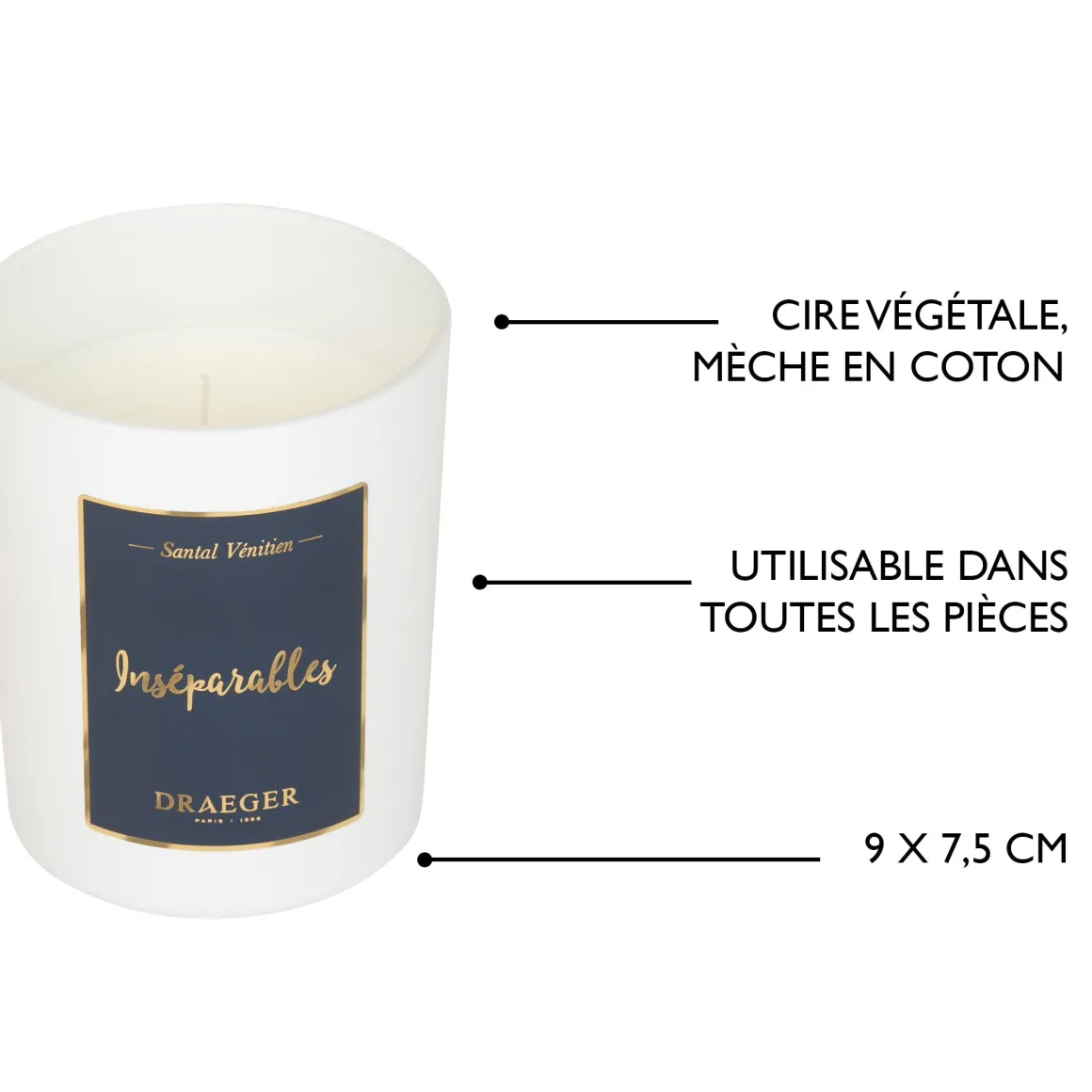 - Matières : verre, cire végétale, mèche en coton.