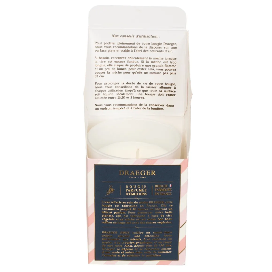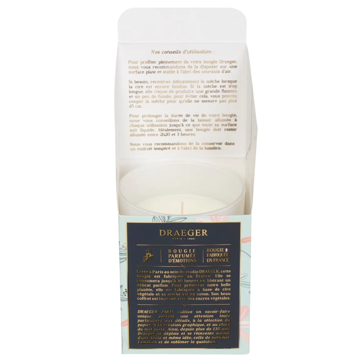 - Complétez votre cadeau avec notre sac cadeau spécialement conçu pour nos bougies (référence : 75004358).