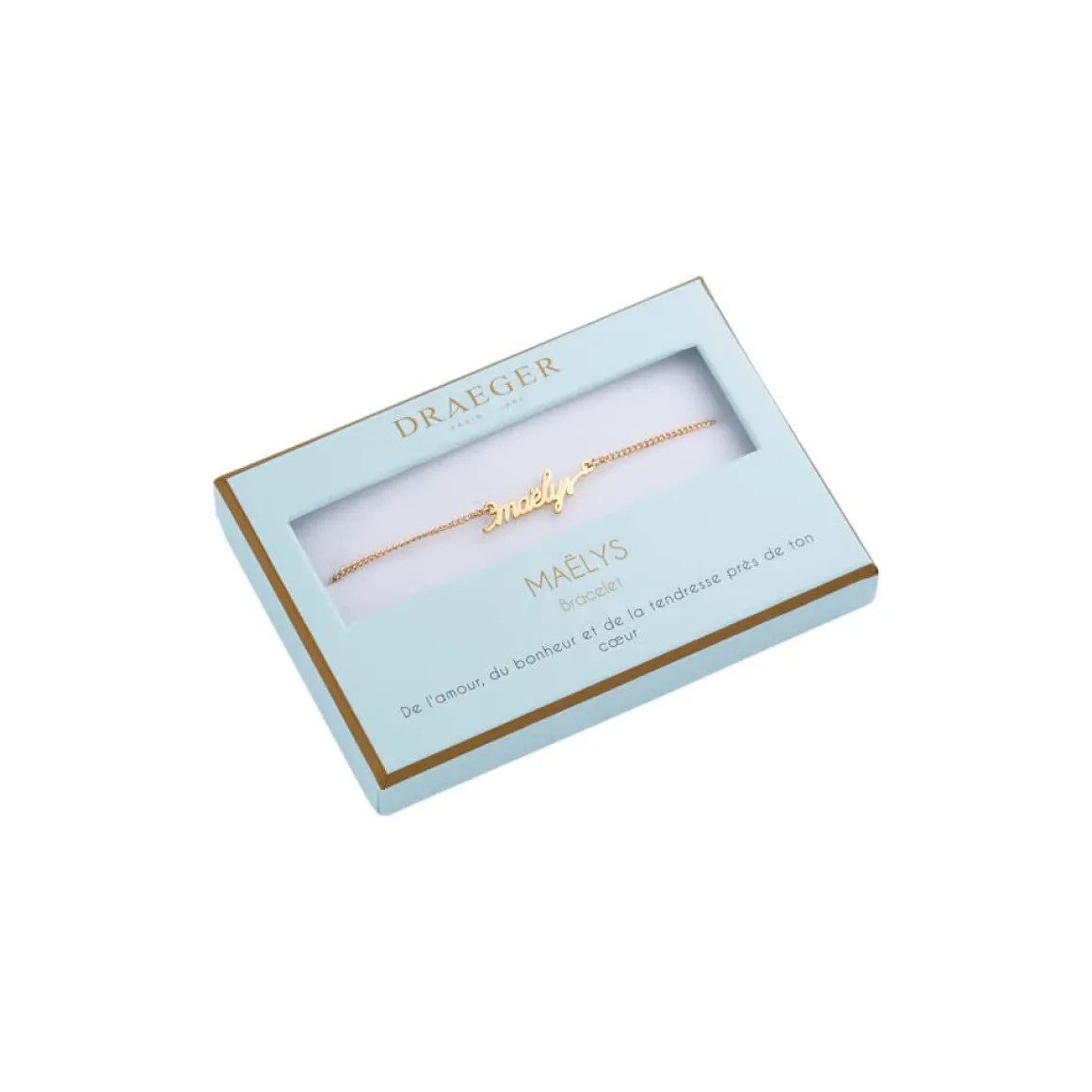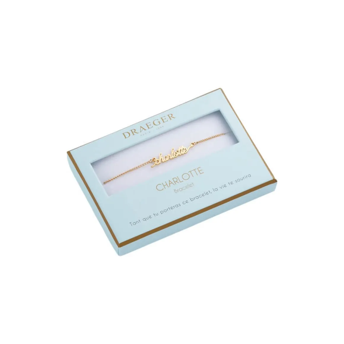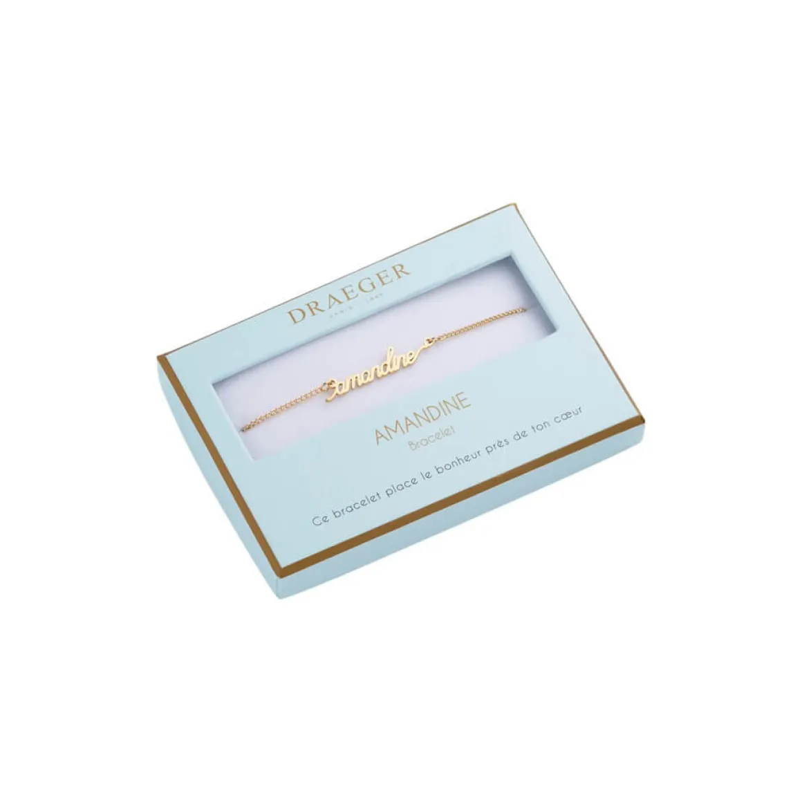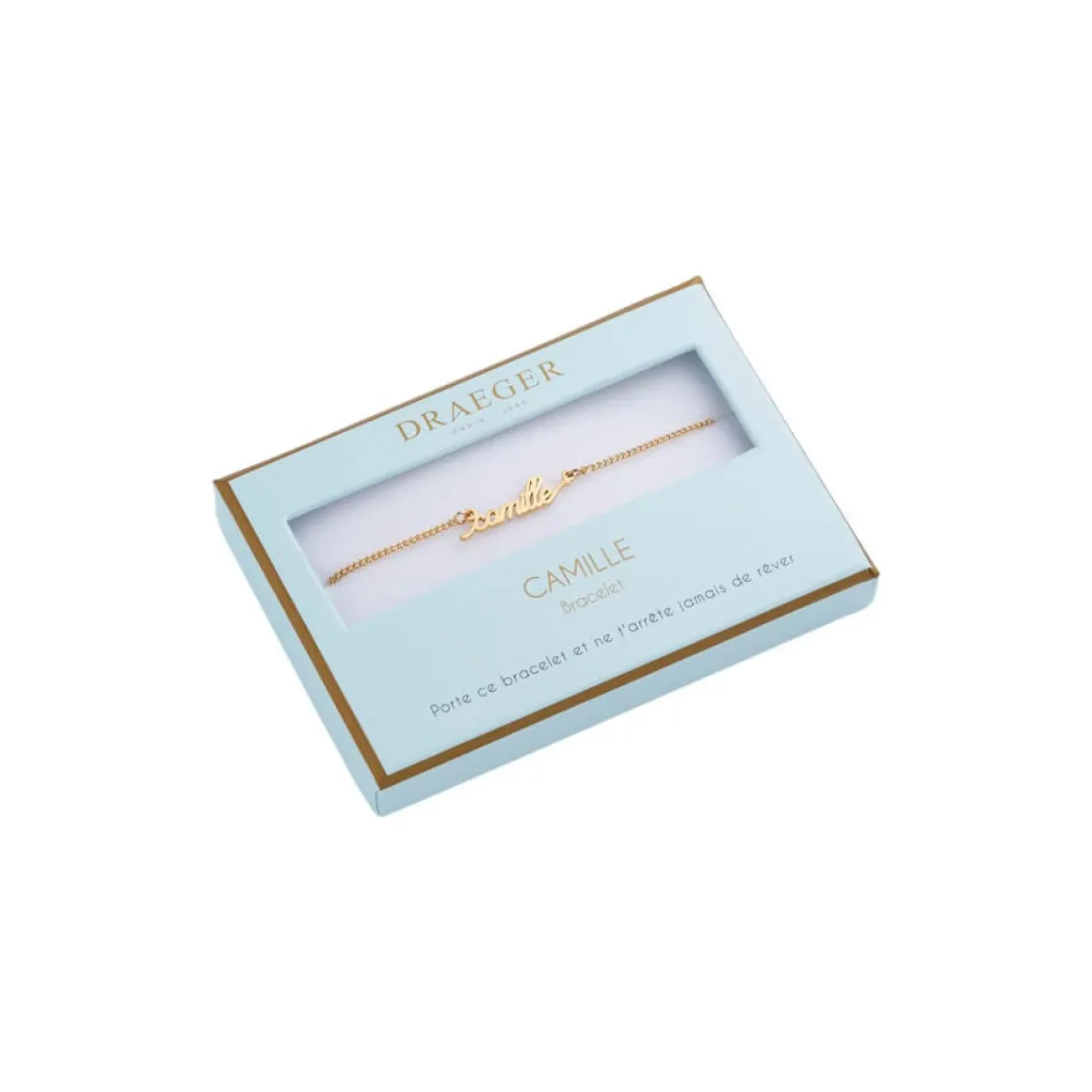 Laissez-vous séduire par notre collection de bracelets prénom avec écriture cursive. Ce bijoux fantaisie personnalisé sublimera le poignet de celle qui le portera. Livré dans son joli écrin, ce cadeau plaira aussi à une amie, votre maman ou votre sœur. Ce bracelet doré sera ravissant avec tous les styles et pour toutes les occasions : Saint-Valentin, anniversaire, Noël.