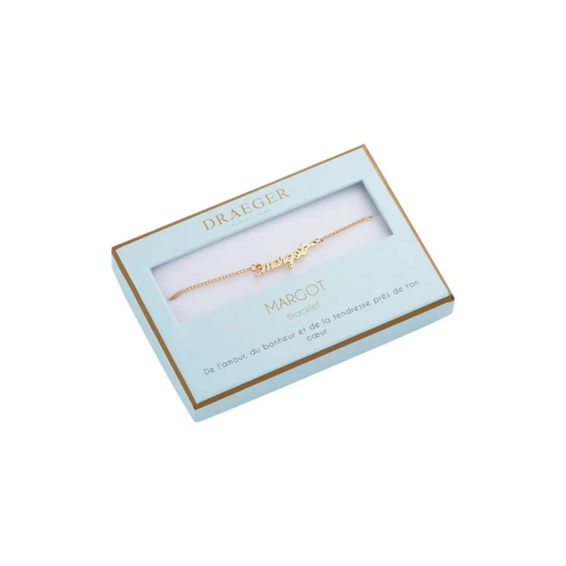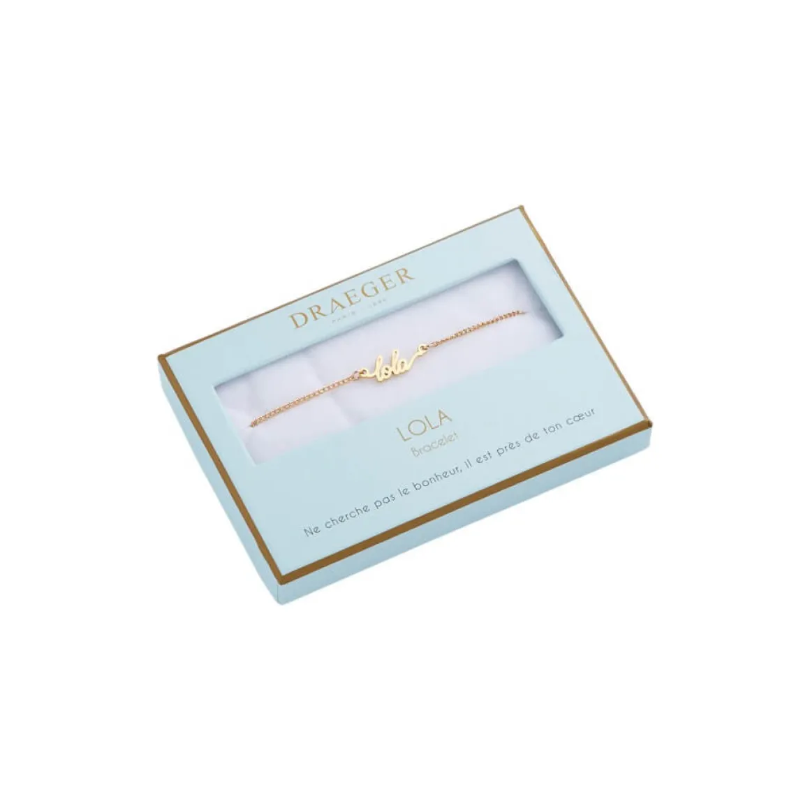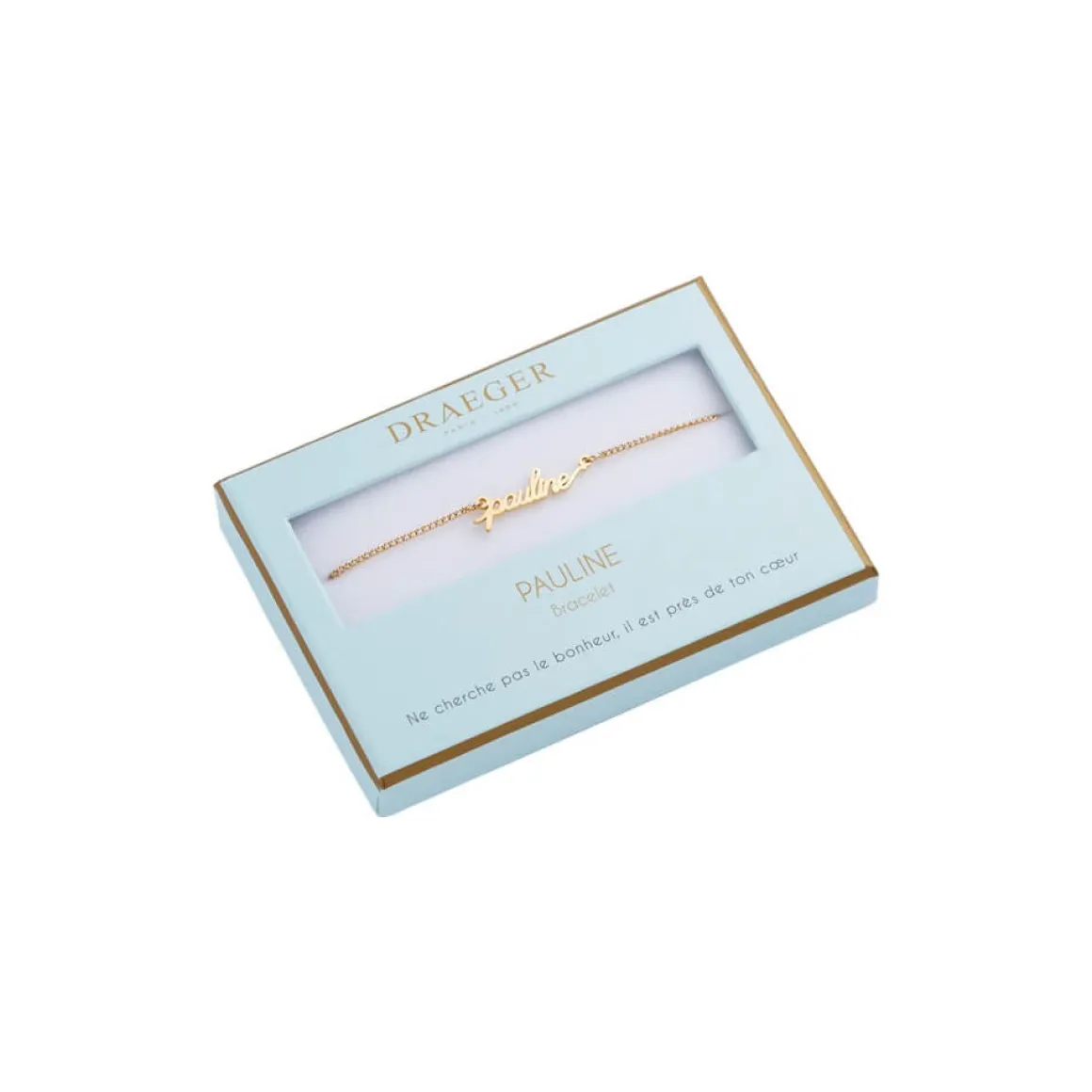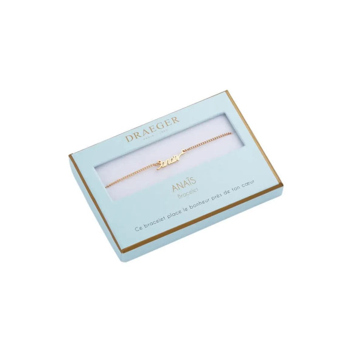 Laissez-vous séduire par notre collection de bracelets prénom avec écriture cursive. Ce bijoux fantaisie personnalisé sublimera le poignet de celle qui le portera. Livré dans son joli écrin, ce cadeau plaira aussi à une amie, votre maman ou votre sœur. Ce bracelet doré sera ravissant avec tous les styles et pour toutes les occasions : Saint-Valentin, anniversaire, Noël.