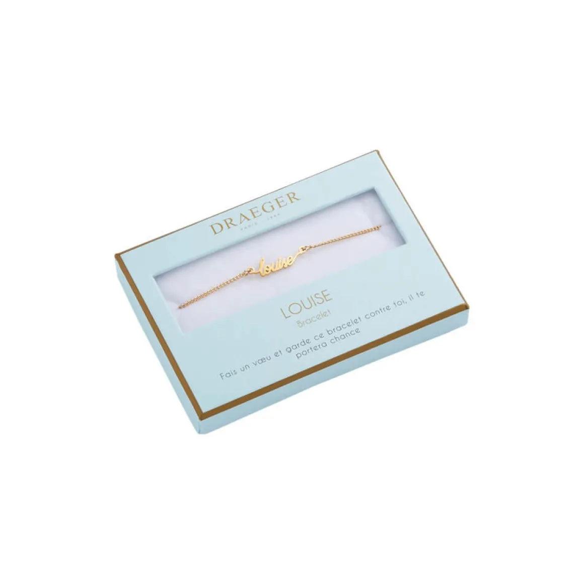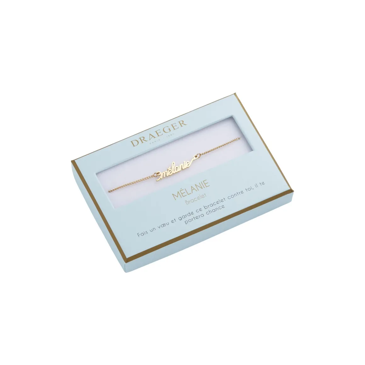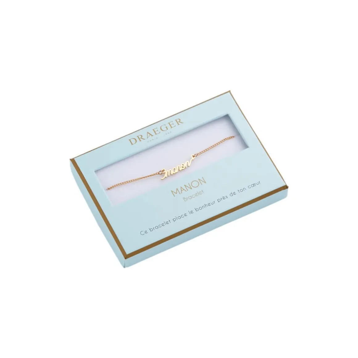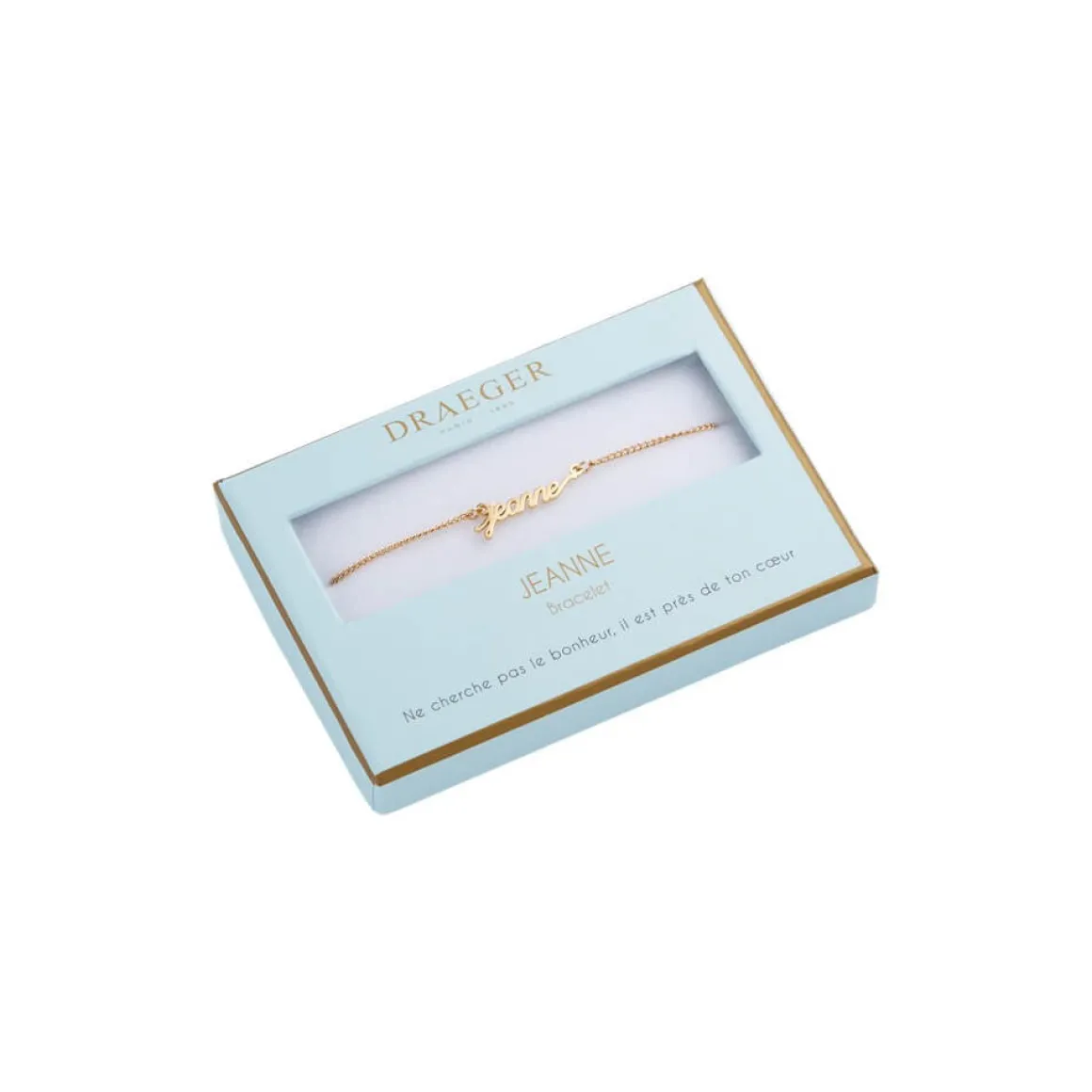 Laissez-vous séduire par notre collection de bracelets prénom avec écriture cursive. Ce bijoux fantaisie personnalisé sublimera le poignet de celle qui le portera. Livré dans son joli écrin, ce cadeau plaira aussi à une amie, votre maman ou votre sœur. Ce bracelet doré sera ravissant avec tous les styles et pour toutes les occasions : Saint-Valentin, anniversaire, Noël.