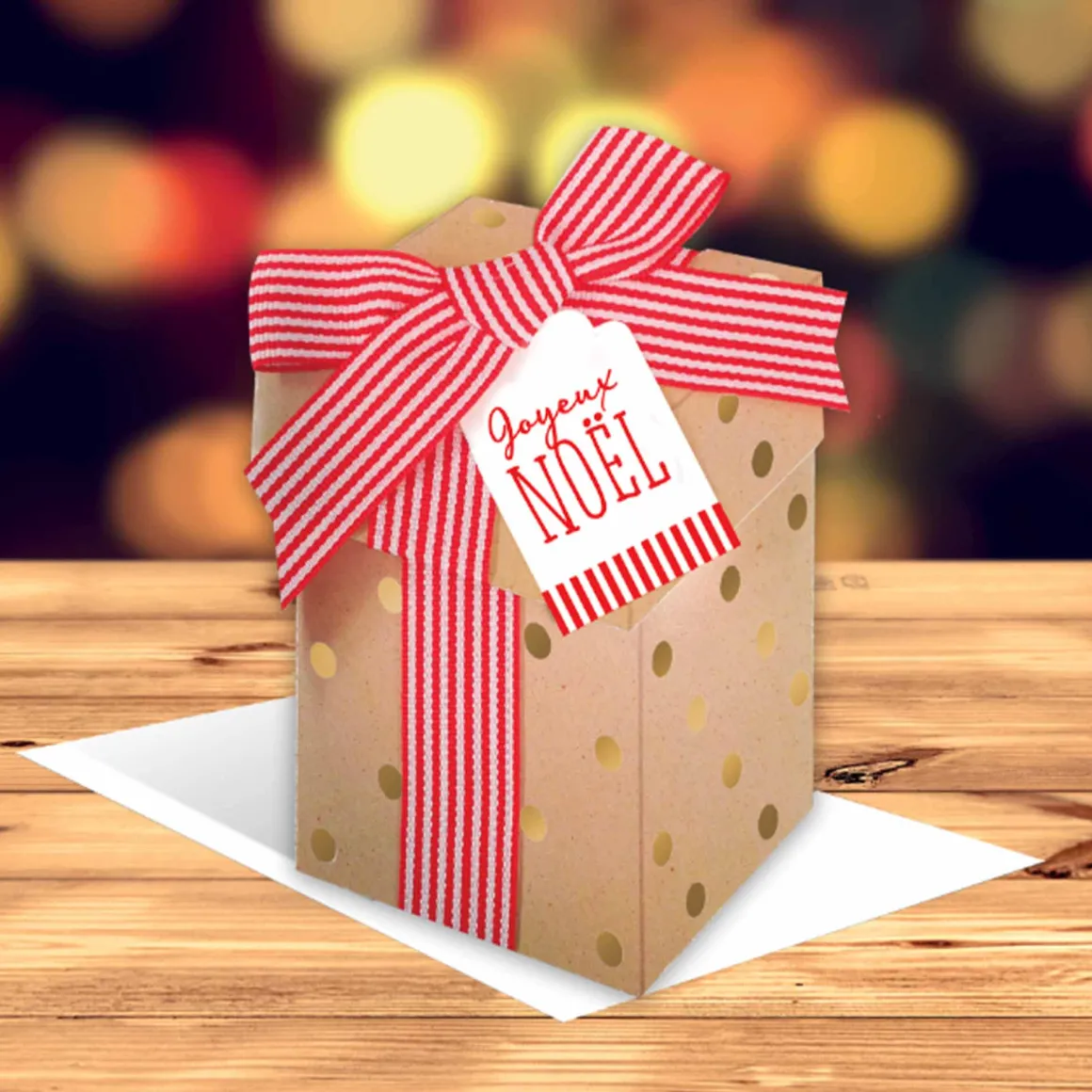 Les fêtes méritent une attention particulière, alors surprenez vos proches avec notre Carte de Vœux Signature en Forme de Cadeau, un design unique et festif qui se démarque et symbolise l’esprit de partage de Noël.