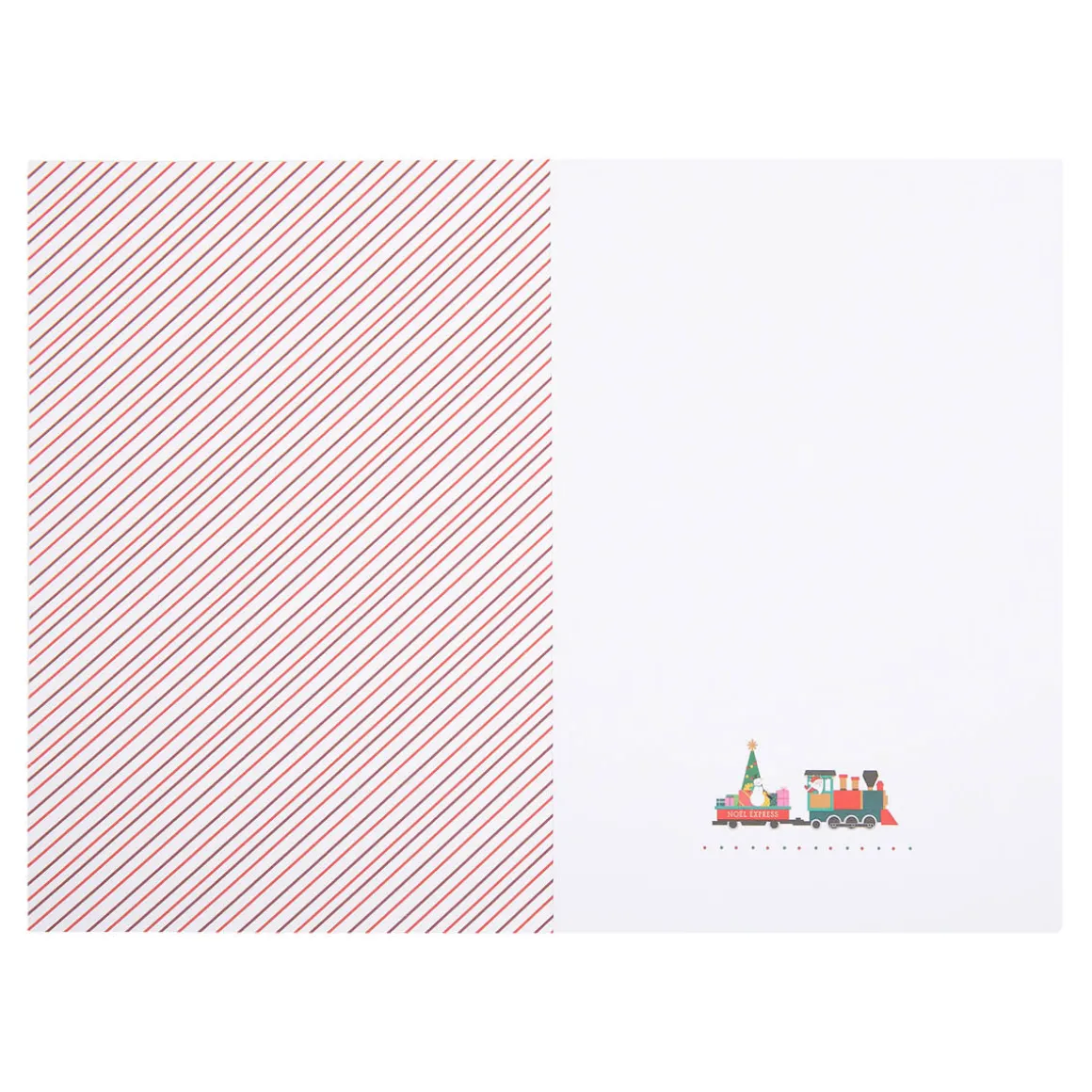 Embarquez vos proches dans un voyage magique pour les fêtes ! Avec la Carte de Vœux de Noël Signature – Train de Noël, laissez l’esprit festif parcourir vos vœux grâce à un design enchanteur qui ravive la joie et l’émerveillement des Noëls d’enfance.