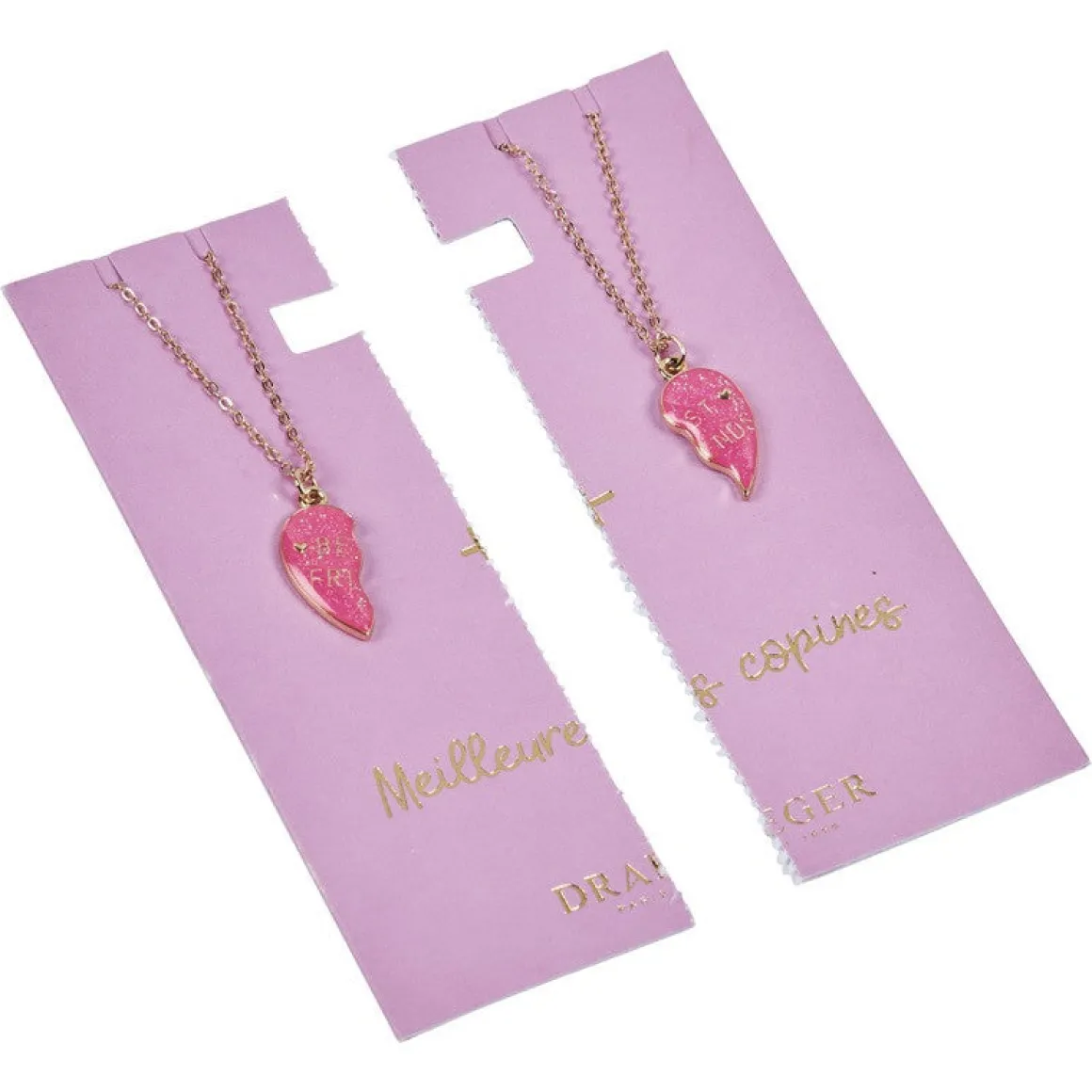 Craquez pour ce lot de colliers prévus spécialement pour vous et votre meilleure amie. Les colliers Best Friends sont munis chacun d’une moitié de pendentif qui, une fois regroupés, forment un joli cœur sur lequel est inscrit « Best Friends ». C’est une belle façon de matérialiser l’amitié que vous partagez avec votre meilleure copine. Pourquoi ne pas lui faire la surprise pour son anniversaire ?