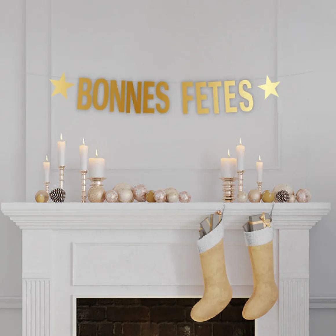 Illuminez votre maison pour les fêtes de Noël avec notre Ensemble de Décoration de Maison pour les Fêtes. Comprend une Étoile Réveillon décorative en papier blanc et or, tissée de tissu, et une Guirlande Décorative de 100 lettres et symboles fournis avec des finitions dorées étincelantes. Célébrez la saison des fêtes avec élégance.