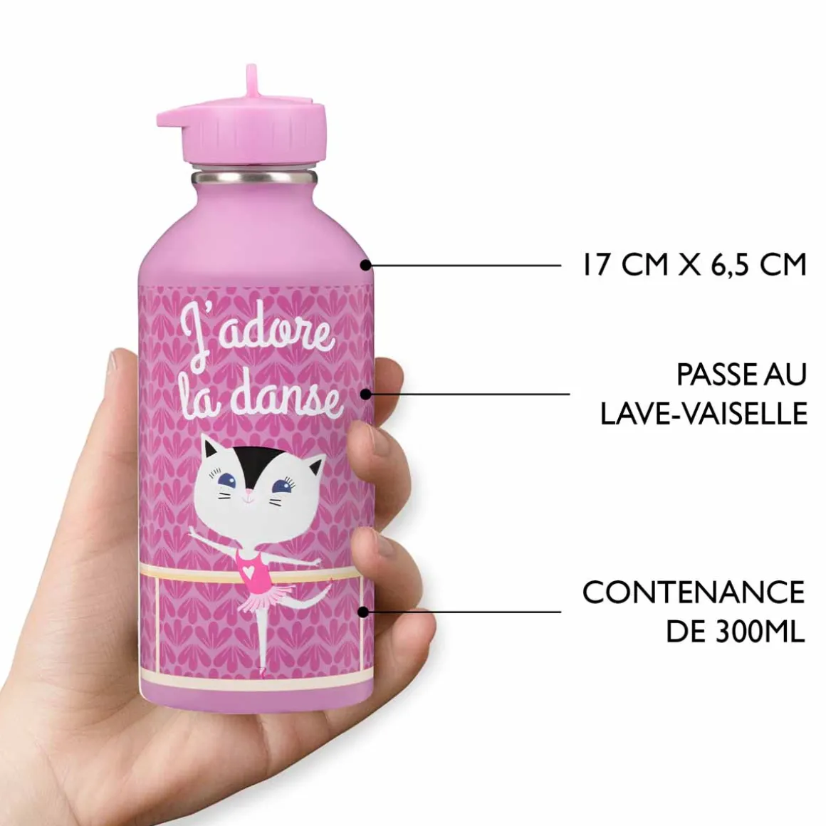 - Texte inscrit sur la gourde : J’adore la danse