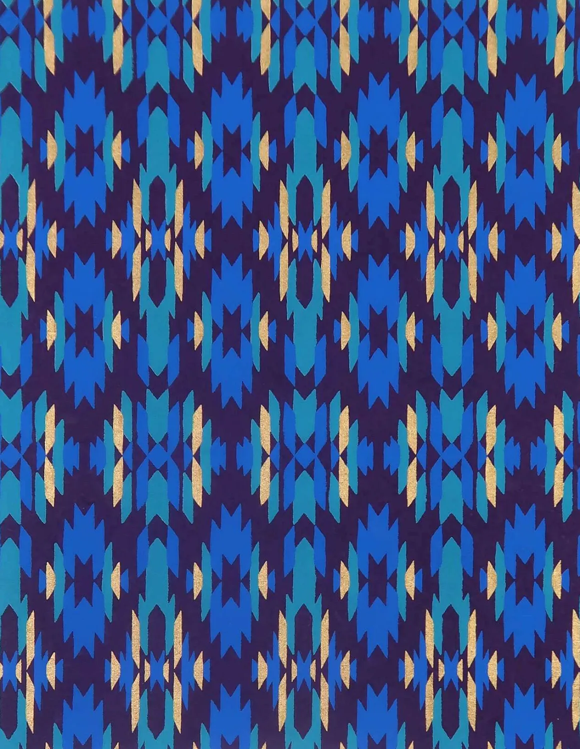 Motifs : géométriques et pois / Effets dorés / Couleurs : bleu, violet, vert et or