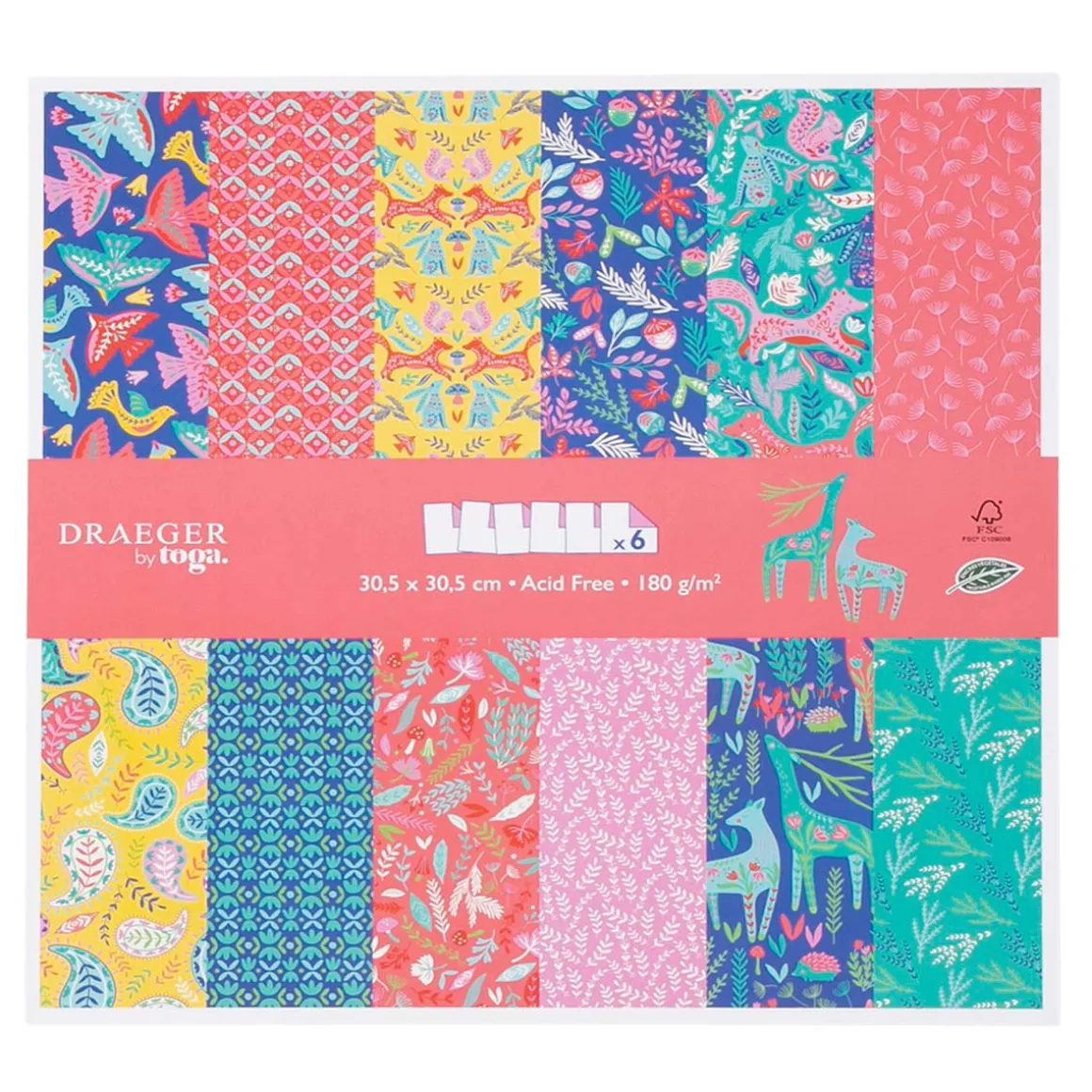 Papier Unitaire*Draeger Paris Set de papiers imprimés Folk x6