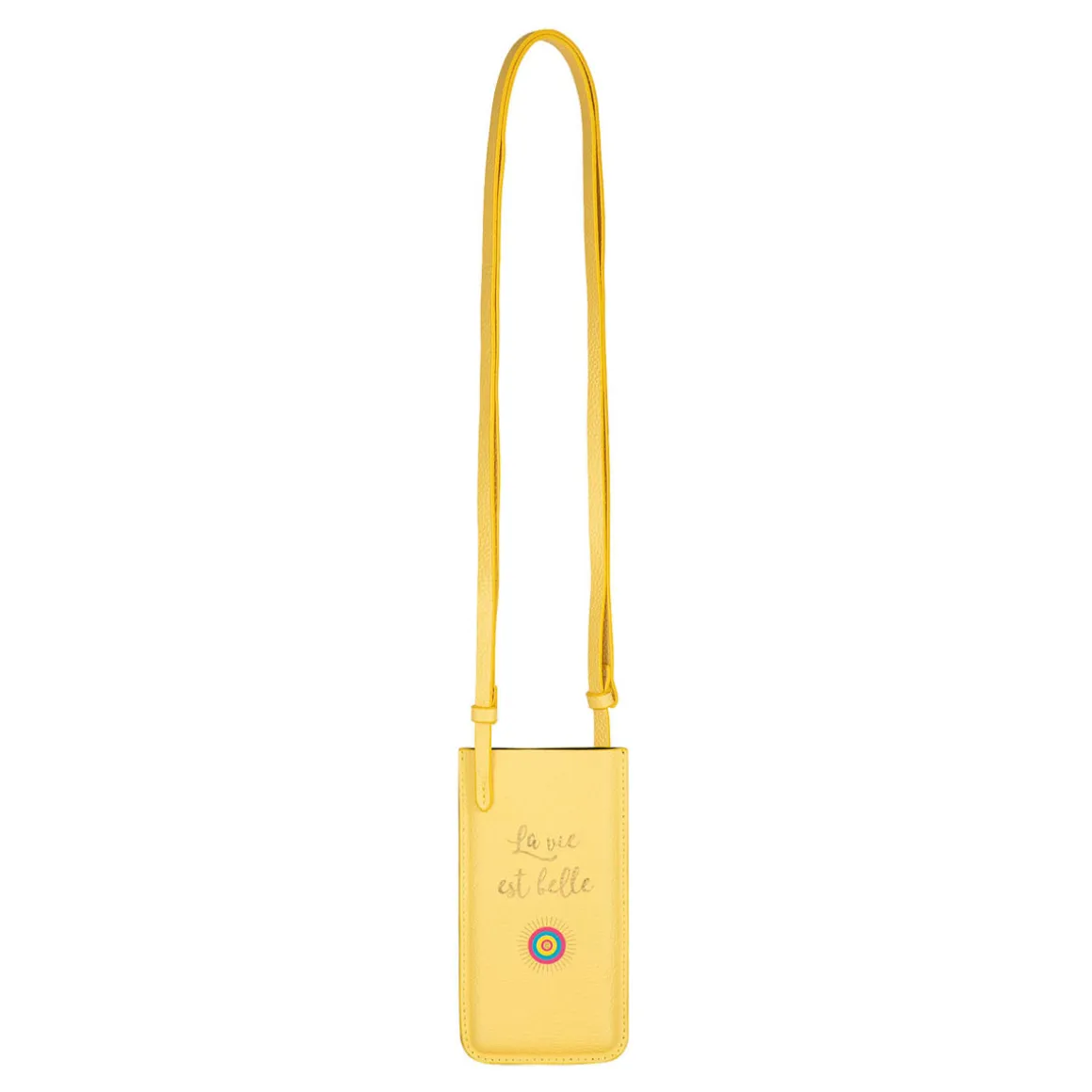 C’est le moment de craquer pour notre pochette de téléphone jaune moutarde au message « La vie est belle » ! Cet accessoire tendance vous permettra de n’emporter que l’essentiel avec vous : smartphone, clés, carte d’identité et carte bancaire. Notre pochette pour téléphone apportera une note colorée à vos tenues. Grâce à sa bandoulière réglable, vous pourrez ajuster sa hauteur selon vos envies.