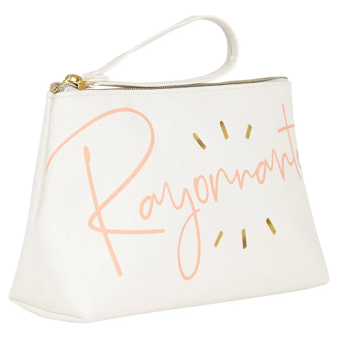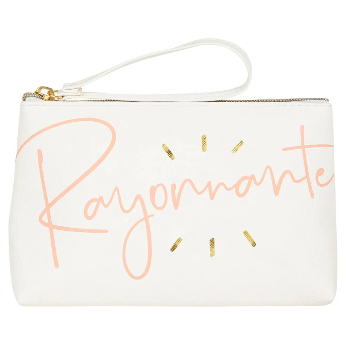 Vous allez craquer pour cette grande pochette illustrée du message « Rayonnante ». Aussi jolie que pratique, elle vous permettra d’y ranger vos essentiels du quotidien ou votre maquillage. C’est un accessoire qui pourra se glisser dans votre sac pour être toujours à portée de main. À offrir ou à s’offrir !