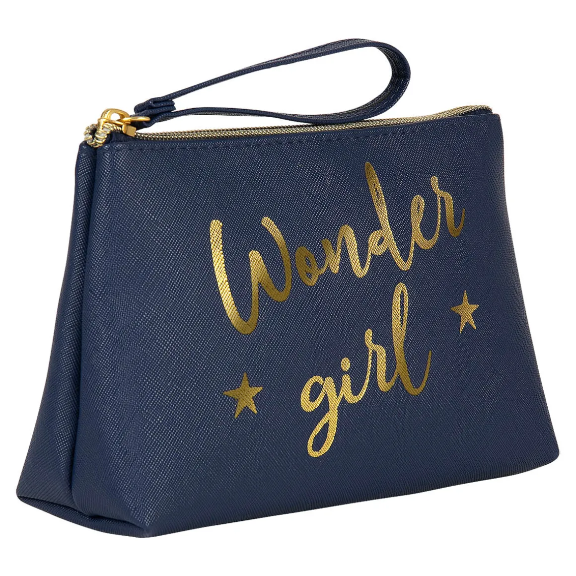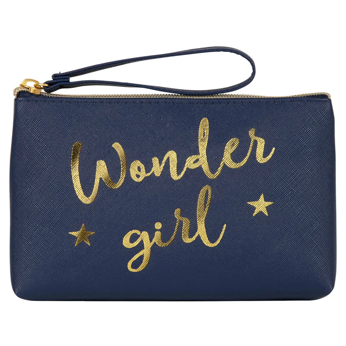 Vous allez craquer pour cette grande pochette illustrée du message « Wonder girl ». Aussi jolie que pratique, elle vous permettra d’y ranger vos essentiels du quotidien ou votre maquillage. C’est un accessoire qui pourra se glisser dans votre sac pour être toujours à portée de main. À offrir ou à s’offrir !