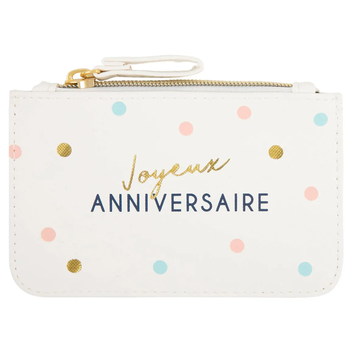 Vous recherchez un cadeau d’anniversaire original et pratique ? Alors notre petite pochette illustrée du message « Joyeux Anniversaire » est faite pour vous ! Cet accessoire pourra se glisser dans n’importe quel sac grâce à sa petite taille. Complétez votre cadeau d’une carte d’anniversaire, d’un bijou ou d’un joli foulard !