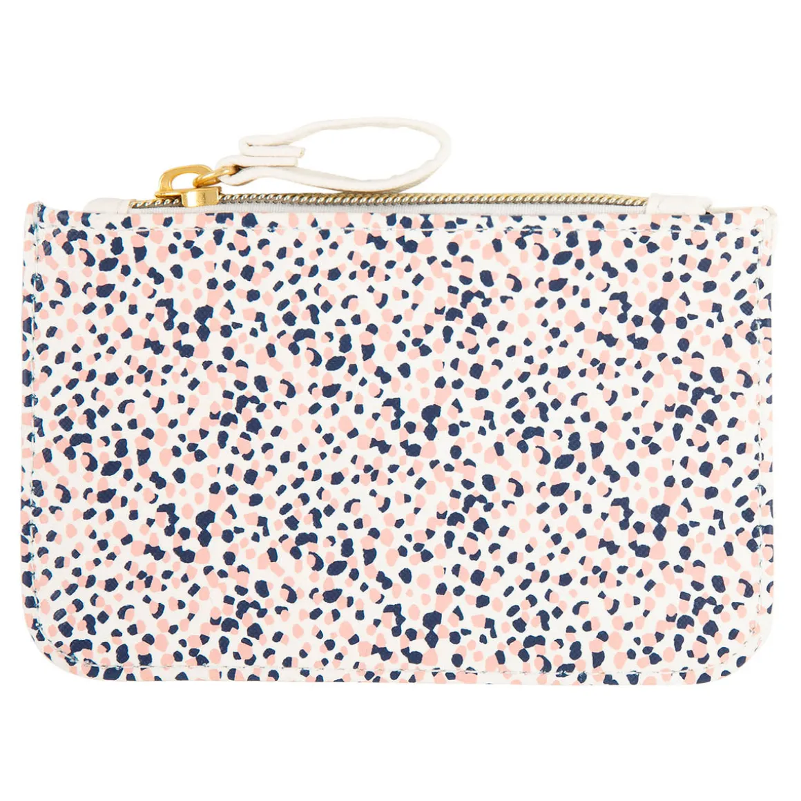Vous allez craquer pour cette petite pochette mouchetée bleue et rose. Aussi jolie que pratique, elle vous permettra d’y ranger vos essentiels comme vos clés, votre carte bancaire, vos billets ou encore votre rouge à lèvres. C’est un accessoire qui vous accompagnera au quotidien. À offrir ou à s’offrir !