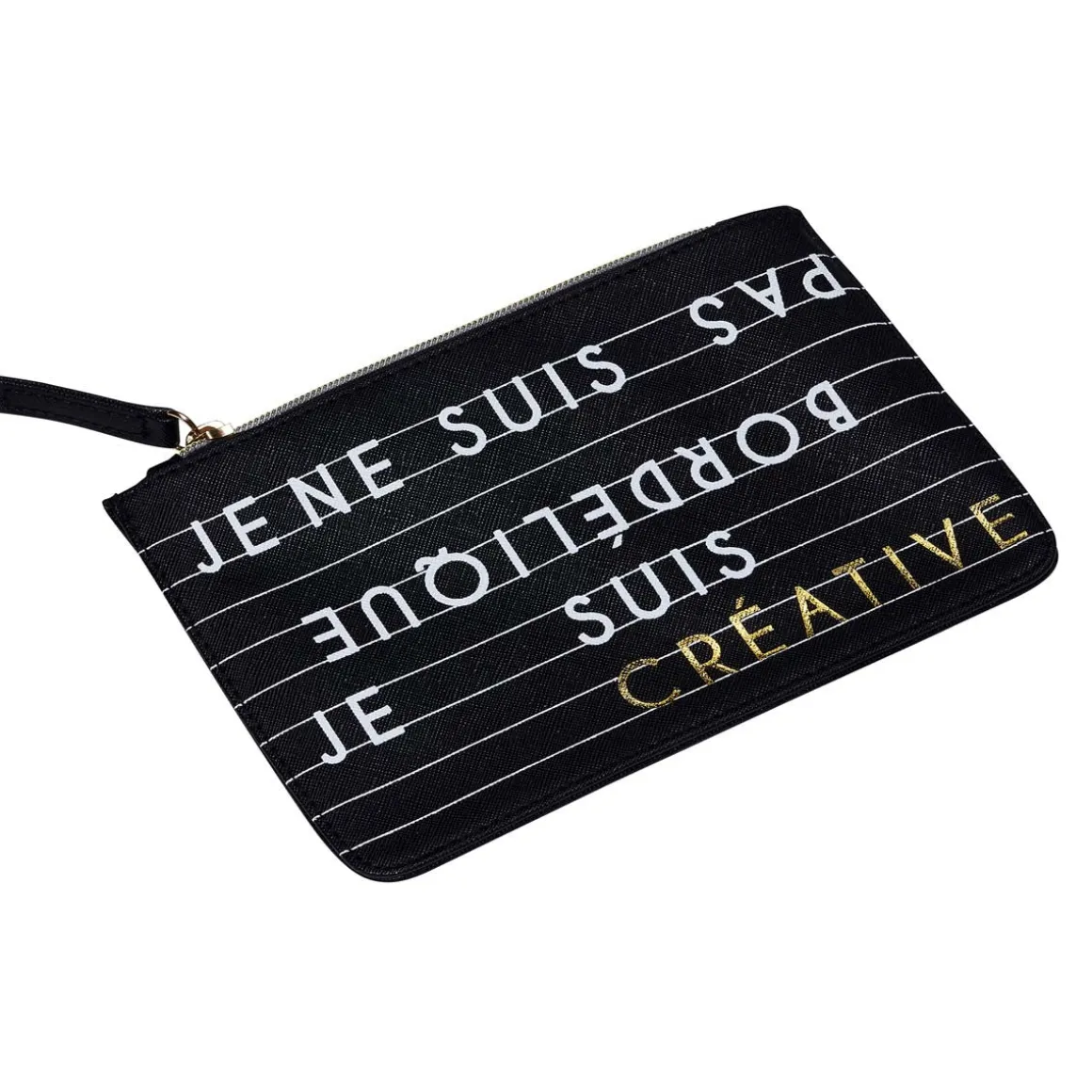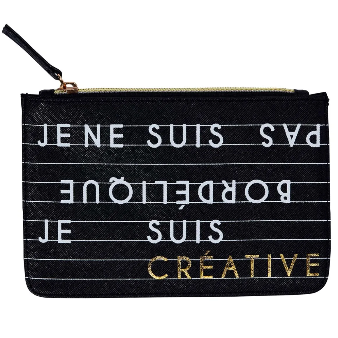 La pochette Je ne suis pas bordélique, je suis créative est un must have aussi bien dans votre vie personnelle que professionnelle ! Vous prendrez plaisir à y ranger vos accessoires beauté, vos papiers, vos notes, vos objets indispensables du quotidien. Bref, vous ne pourrez plus vous en passer. C’est aussi une belle idée cadeau pour vos proches à l’occasion de Noël, pour faire sourire ceux qui la recevront. Fermeture zippée.