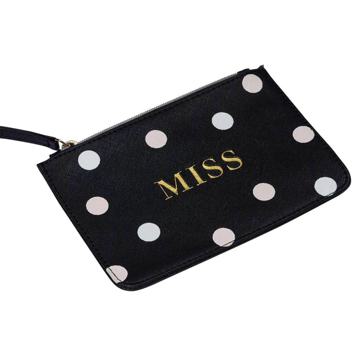 Vous êtes à la recherche d’une pochette sobre, élégante, originale et à petit prix ? Nous avons trouvé ce qu’il vous faut ! Cette jolie pochette Miss deviendra un véritable compagnon pour vous. Bien plus qu’un simple accessoire mode, il s’agira d’un outil pratique pour une vie rangée et organisée. Coloris noir, pois blancs et écriture dorée. Fermeture zippée. Un cadeau à offrir ou à s’offrir.
