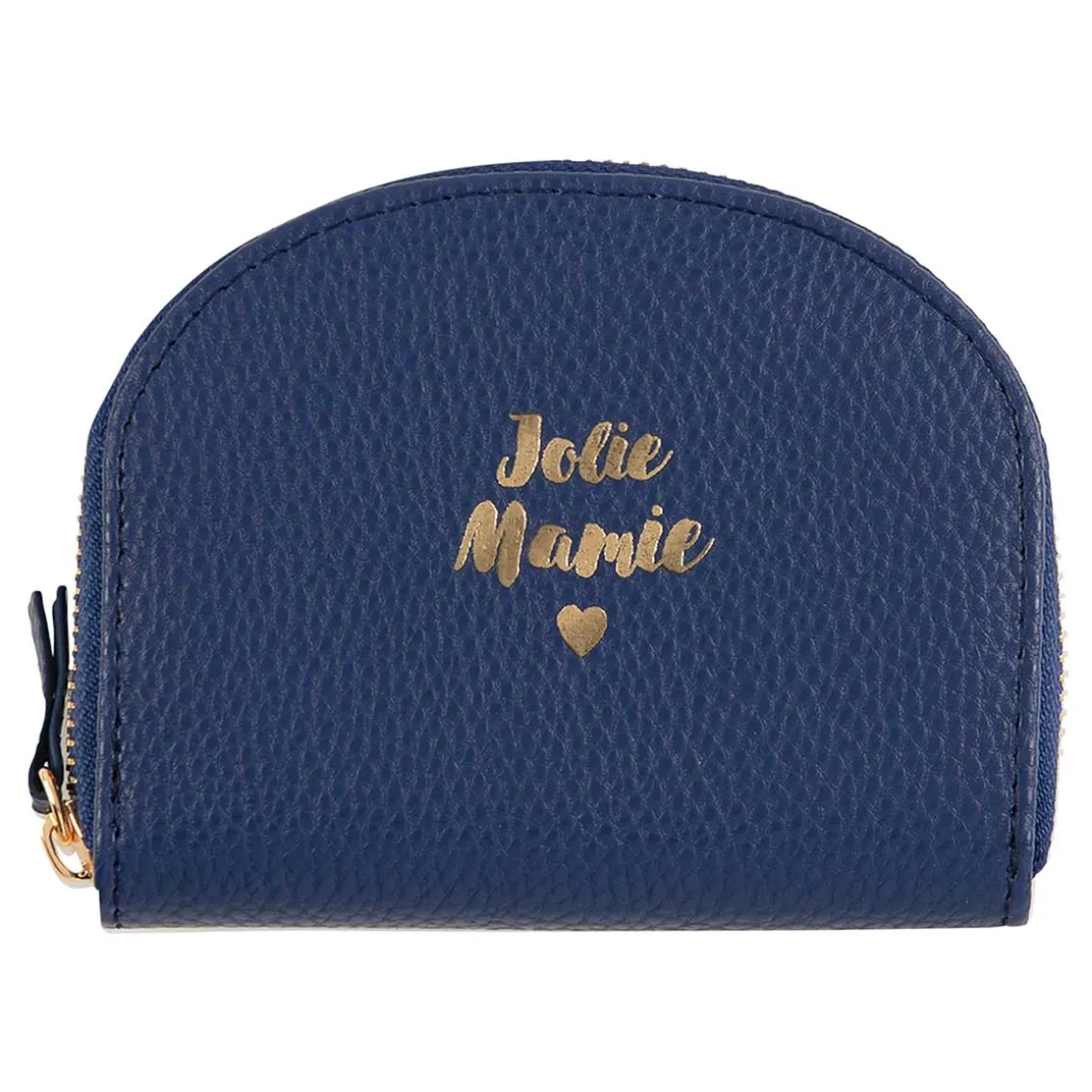 - Porte-monnaie bleu marine avec le texte doré « Jolie mamie ».