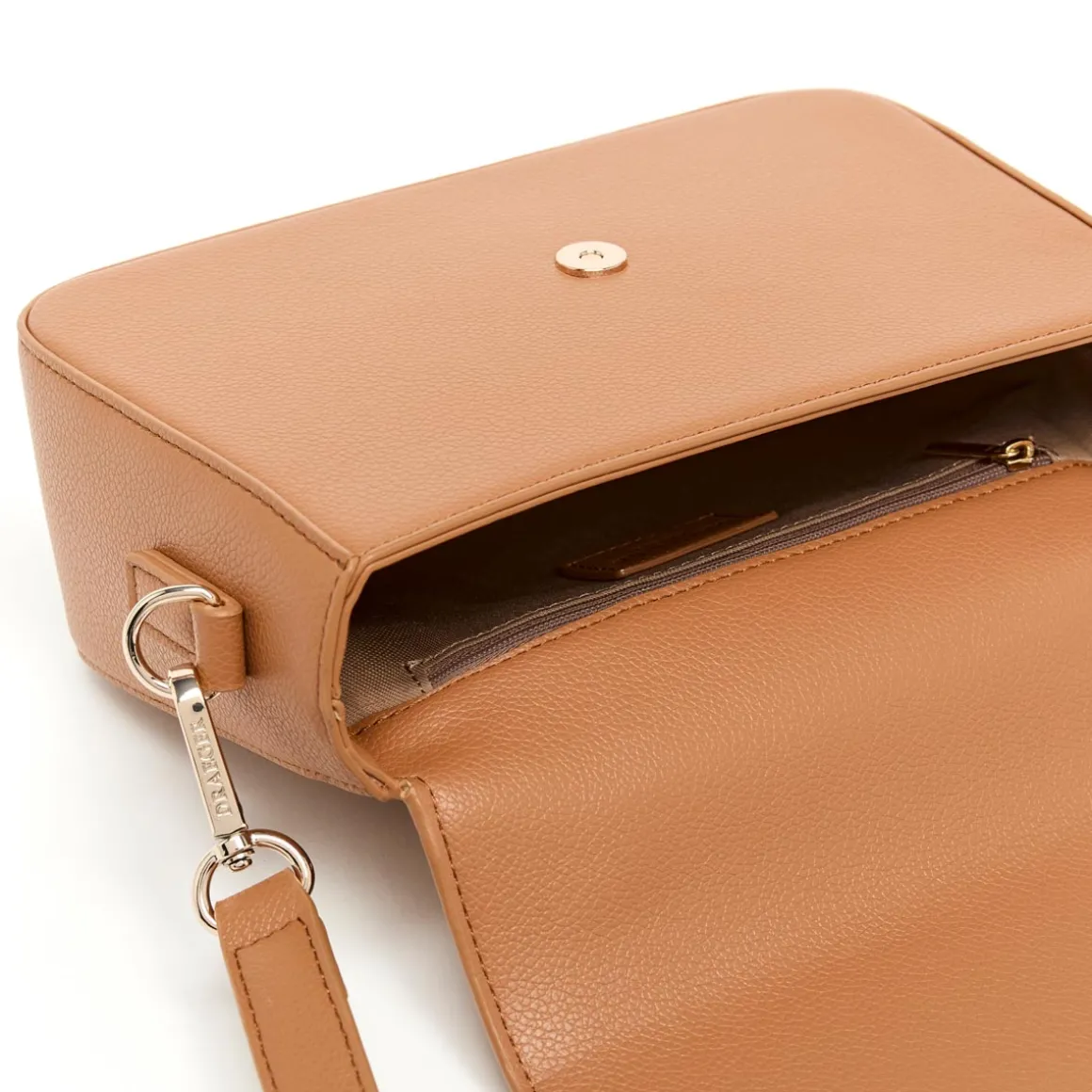 Ce sac dispose d’un fermoir original avec un rabat aimanté et ses finitions signées Draeger apportent une touche de sophistication à cet accessoire tendance.