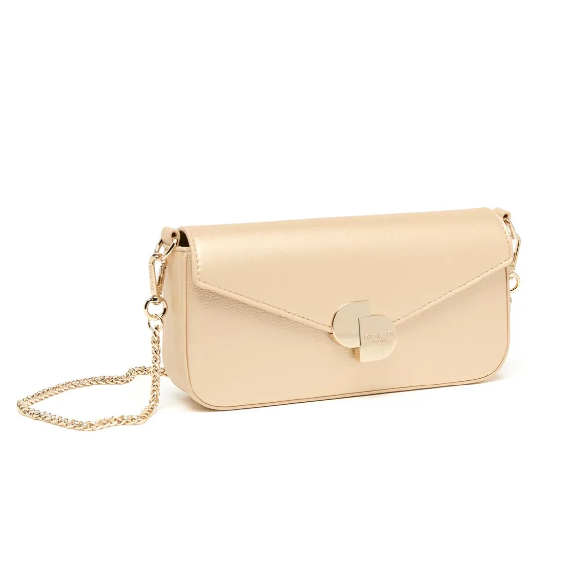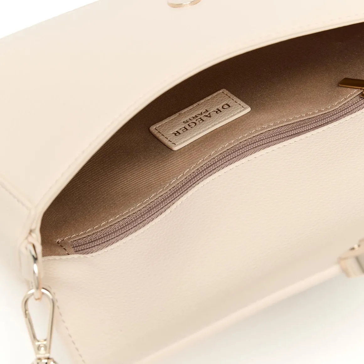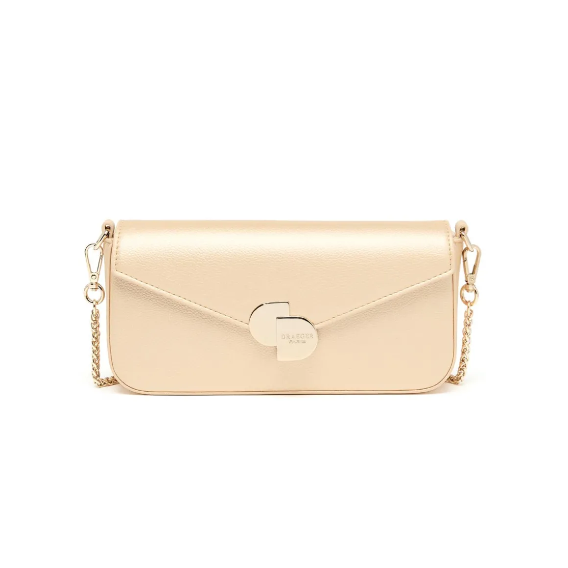 Sa bandoulière en chaîne ajustable et son fermoir original signé Draeger en font un modèle raffiné, parfait pour compléter vos tenues, qu’elles soient habillées ou décontractées. Compact mais pratique, il dispose de plusieurs poches de rangement pour organiser vos essentiels avec style.