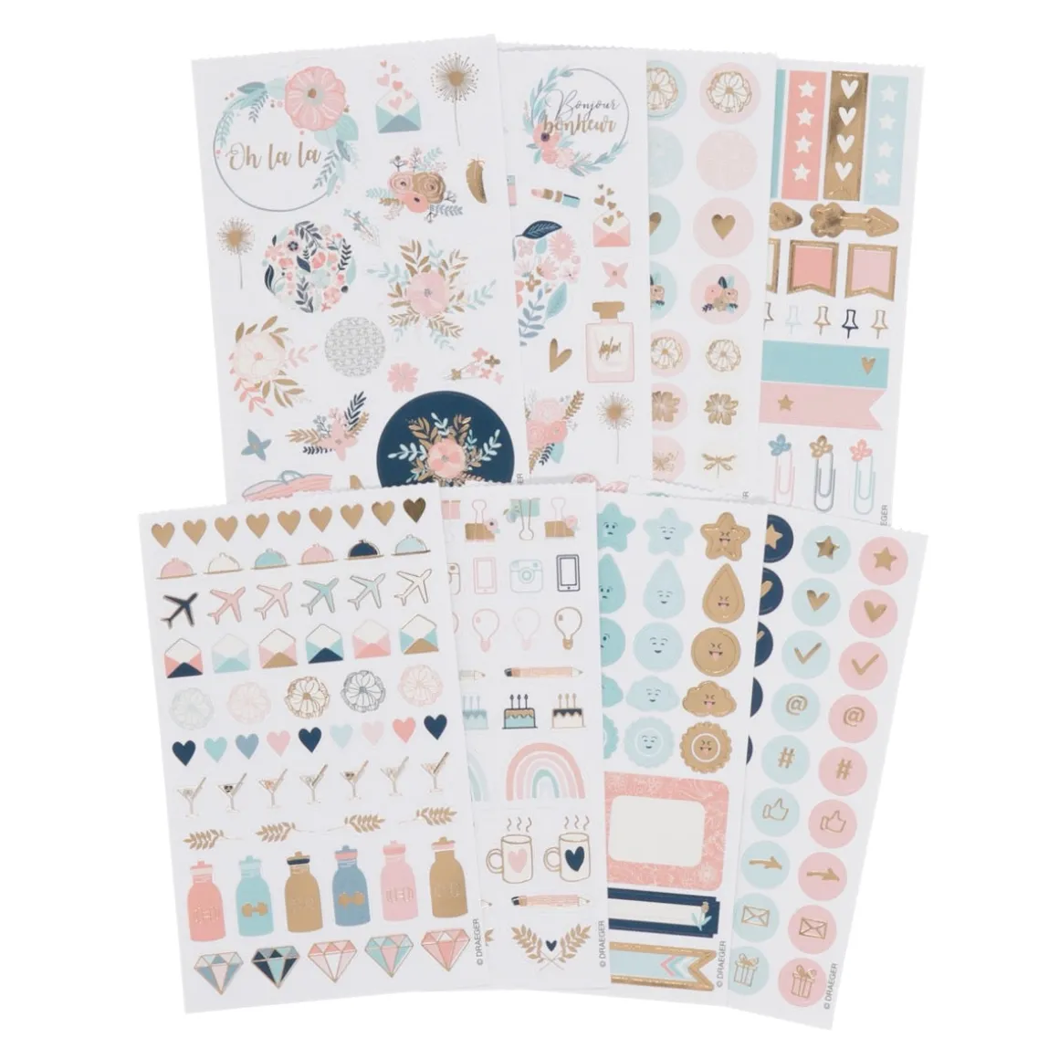 Adoptez notre carnet de 300 mini stickers sur le thème des fleurs et de l’organisation. Les dessins sont variés pour vous permettre d’illustrer tous les événements de votre Bullet journal ou de votre agenda. En plus de rendre votre carnet plus attractif, nos stickers lui feront gagner en lisibilité : Icone avion ? Départ en vacances ! Icone couronne de fleurs ? Mariage de votre meilleure amie ! Icone cocktail ? Apéro entre amis !
