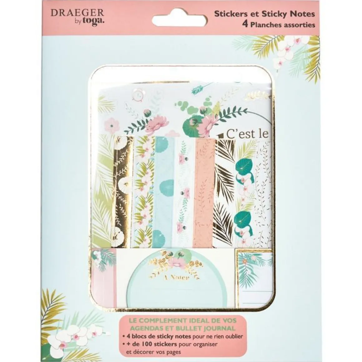 - 4 planches assorties, plus de 100 stickers pour décorer et organiser vos pages : stickers, bandes de masking tape, petites notes repositionnables