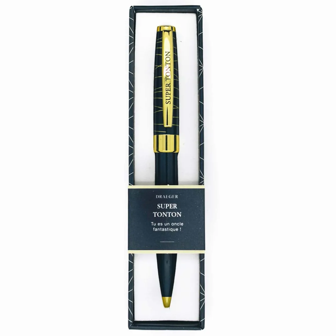 D’innombrables tontons sont déjà conquis par ce stylo à message de la collection Pastel Chic. Faites chavirer le cœur du vôtre en lui offrant ce cadeau personnalisé. A bille noire rétractable, doté d’une silhouette épurée au ton bleu nuit et d’une qualité graphique supérieure, il égaiera à coup sûr ses journées. Il est vendu dans un superbe coffret cadeau.