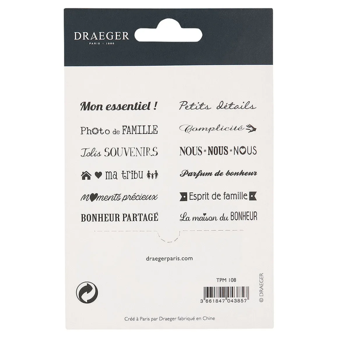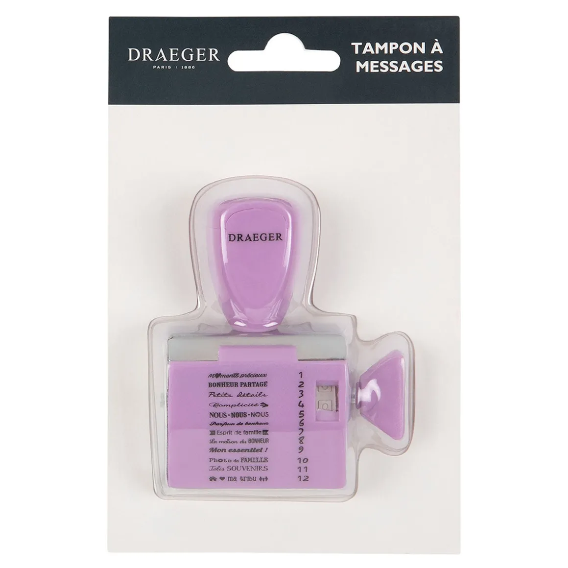 Un accessoire DIY original et indispensable pour customiser tous vos courriers et lettres : le tampon encreur à message sur la thématique de la Famille ! Ce tampon à molette délivre 12 messages autour du bonheur, de la joie et de la famille pour une personnalisation réussie. « Bonheur partagé », « Mes essentiels », « Esprit de famille » ou encore « La maison du bonheur » et « Ma tribu ». Un tampon très facile d’utilisation, aussi bien par les enfants que par les parents grâce à sa molette numérotée.