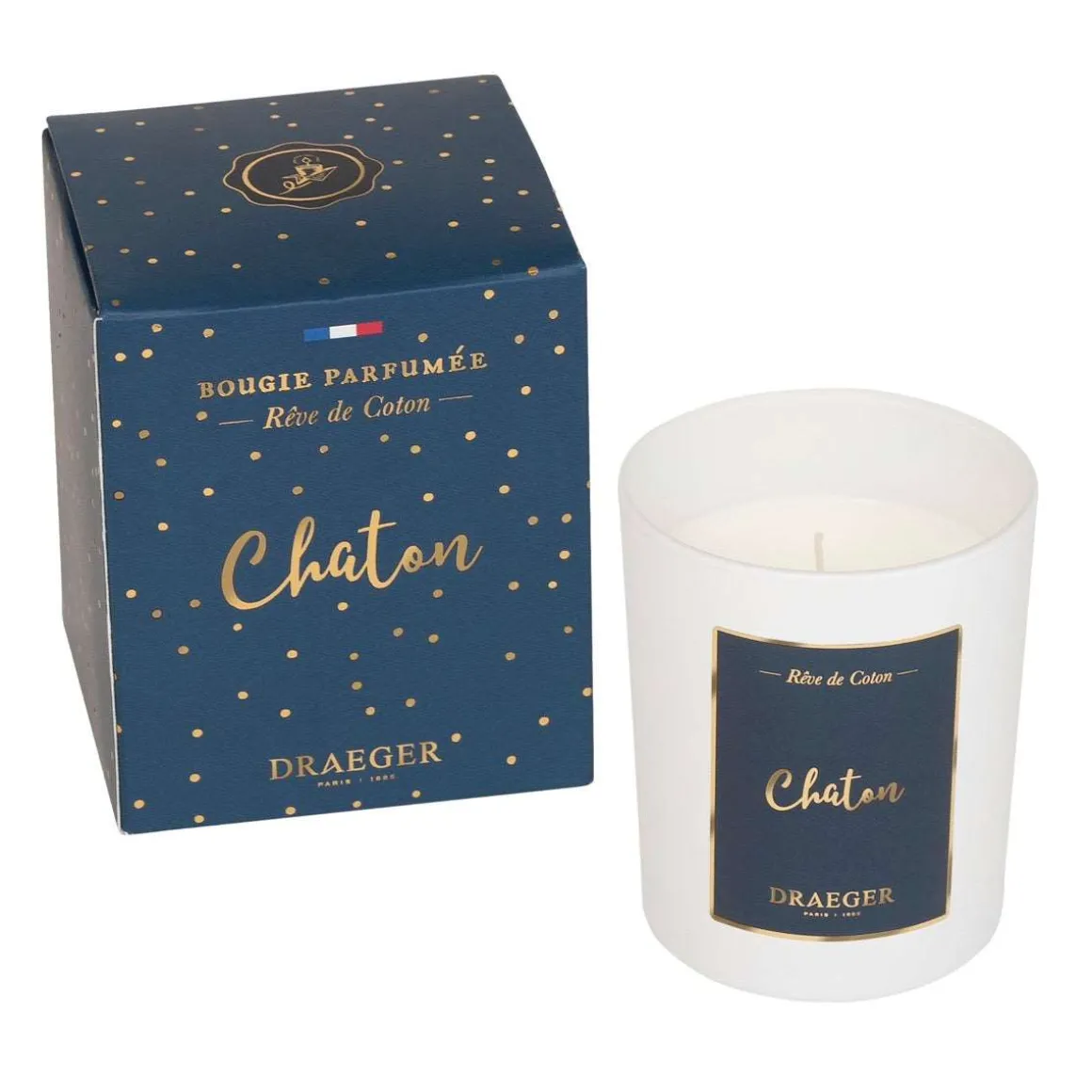 Elle est l’un des coups de cœur de l’équipe Draeger : la bougie au message personnalisé « Chaton » est le cadeau parfait à faire à votre moitié ! Inscrit en lettres dorées, ce message intime et personnalisé rend cette bougie fabriquée en France absolument unique. Le design de la bougie comme de la boîte est à la hauteur du reste : à la fois élégant et adaptable à toutes les décorations d’intérieur.