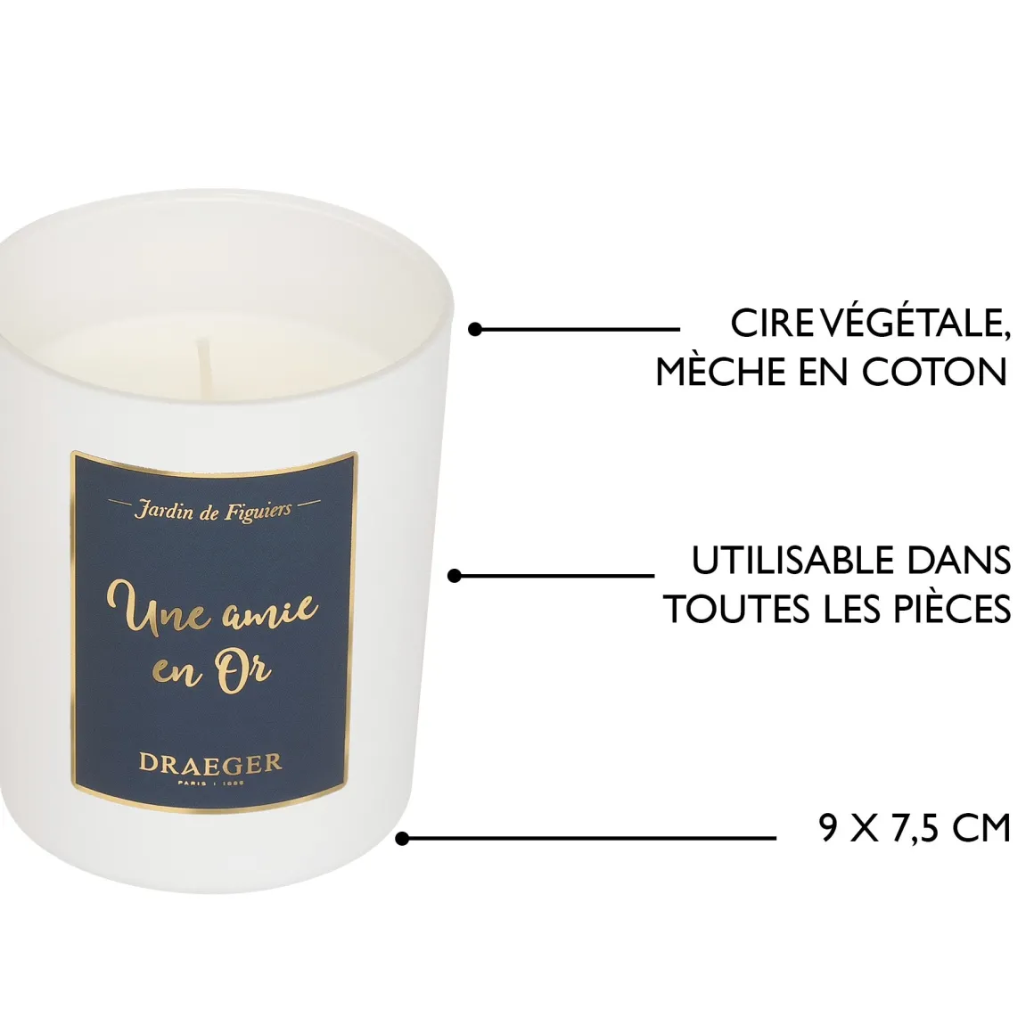 - Message inscrit sur l’étiquette de la bougie : Une amie en or.