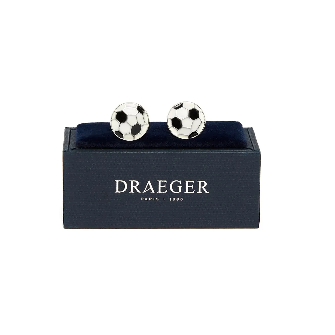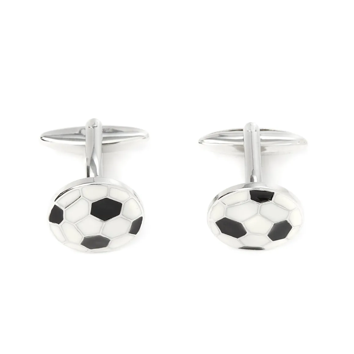 - Boutons de manchettes en forme de ballon de football blanc et noir.
