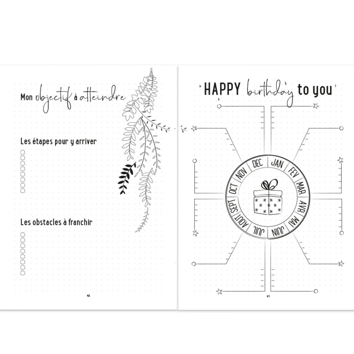 - Bullet journal avec des pages pré-remplies à points