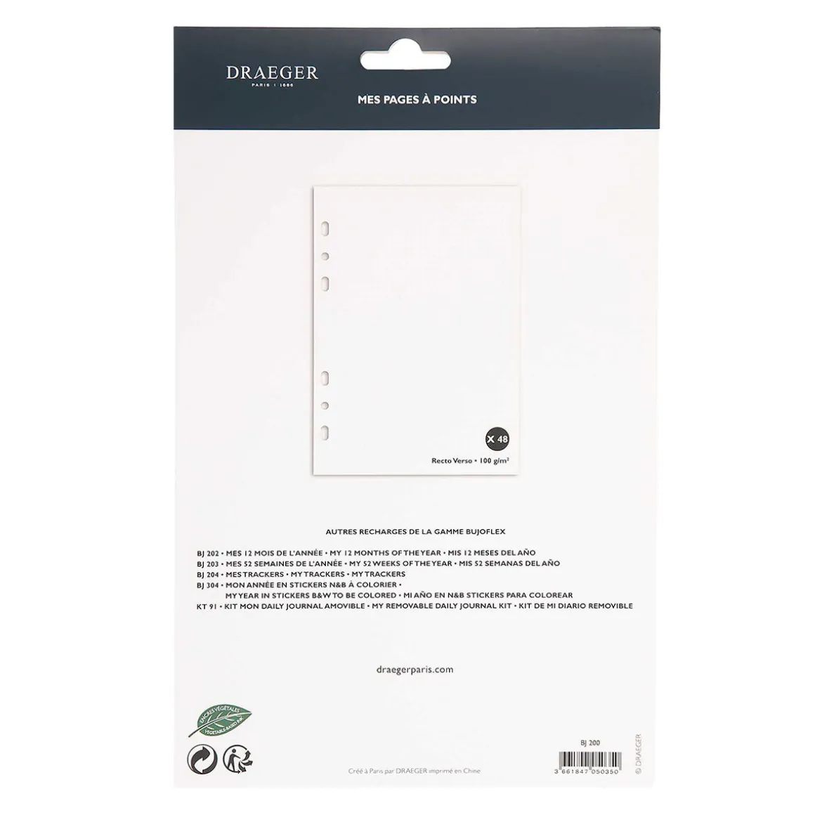 Si vous avez opté pour un Bullet Journal avec pages amovibles, il vous suffit de vous munir de nouvelles pages vierge pour profiter d’un tout nouveau carnet. Un nouveau terrain de jeu et d’écriture pour écrire votre flot de pensées, vos émotions, vos intentions, vos envies. Ce kit comprend 48 pages amovibles à points pour Bullet Journal. De quoi réaliser vos plus beaux mood trackers !