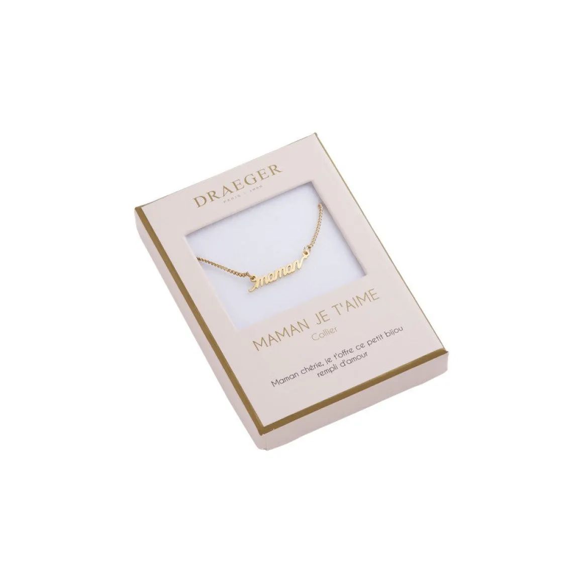 L’amour d’une maman est sacré et irremplaçable. Toute une vie ne suffirait pas pour lui exprimer votre gratitude et votre amour. Il est toutefois possible de lui faire plaisir et de symboliser toute la tendresse que vous lui portez en lui offrant ce magnifique collier fantaisie en métal dorée, de la marque DRAEGER. Son joli médaillon porte l’inscription Maman.