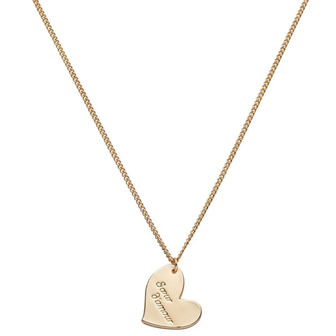 Vous voulez dire à votre sœur que vous l’aimez ? Alors ce collier ‘Sœur d’amour’ sera le cadeau idéal pour toute occasion : anniversaire, fête, Noël, n’hésitez plus ! Elle sera ravissante en toute circonstance, pour une soirée comme en journée avec ce collier aux finitions dorées et aux lignes épurées !