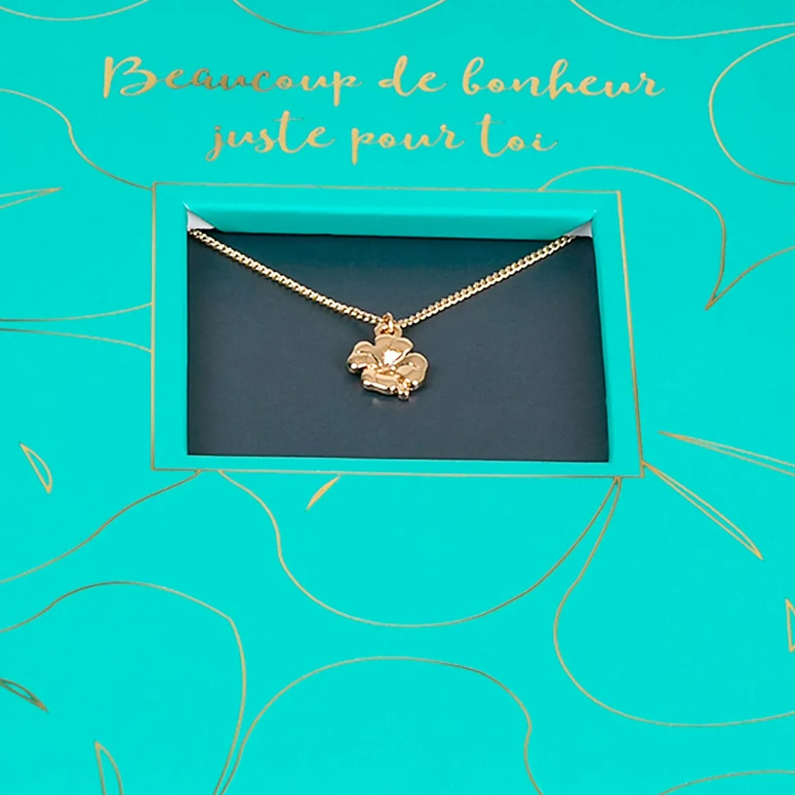 Offrez à votre bien-aimé un porte-bonheur avec notre magnifique collier trèfle à 4 feuilles Carte Bijou ! Faites-lui savoir qu’il ou elle a votre chance et votre amour à chaque instant avec ce bijou unique et élégant. Une façon parfaite de montrer votre passion et votre dévotion.