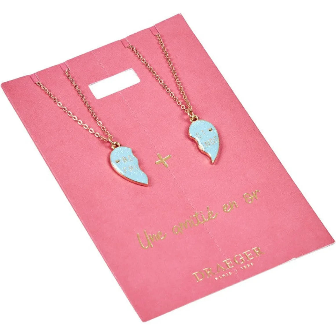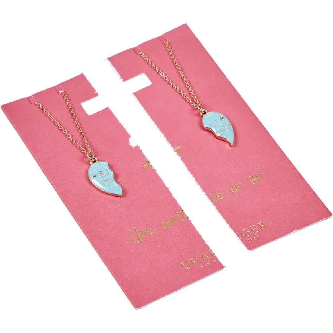 Une amitié en or, c’est si rare ! Si vous avez la chance d’avoir rencontré une amie qui sait vous comprendre et rire de tout avec vous, faites-lui plaisir avec un cadeau original qui a de la valeur pour vous deux ! Ce lot de deux colliers fantaisie « Best Friends » a été pensé pour toutes les meilleures amies qui veulent symboliser leur amitié unique par un joli bijou. Chacune sa chaîne et sa moitié de cœur en pendentif pour penser à l’autre tous les jours.