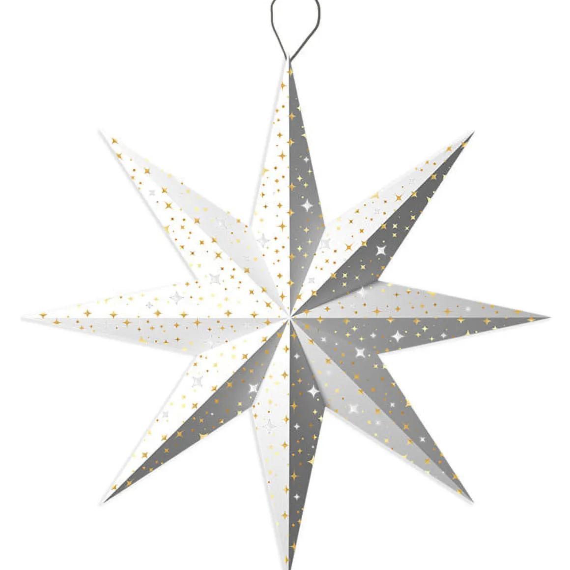 Etoile réveillon décorative en papier – Blanc et or – Tissu tressé – 32,5x18x2,5 cm