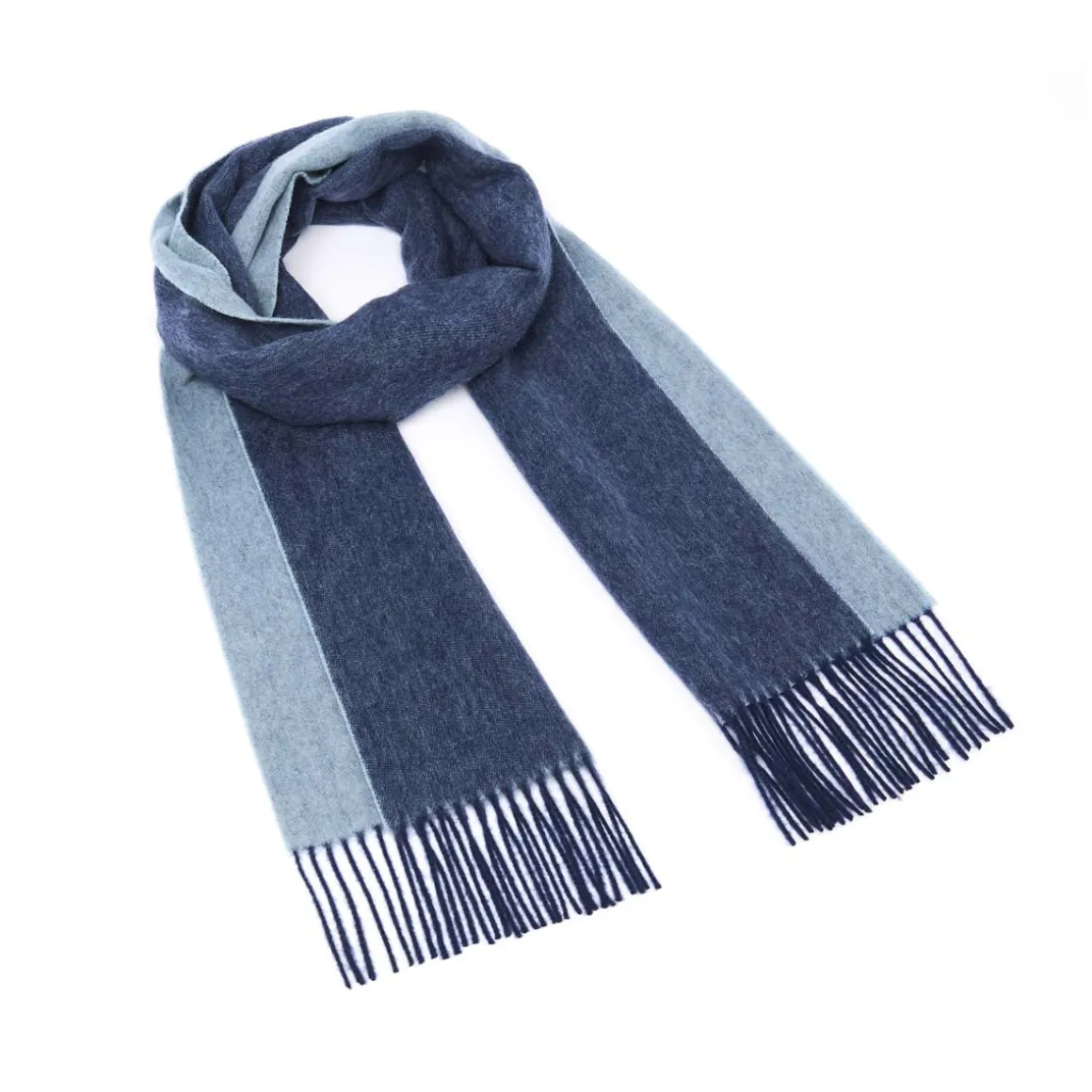 - Écharpe Réversible en Laine – Bleu Ciel et Marine