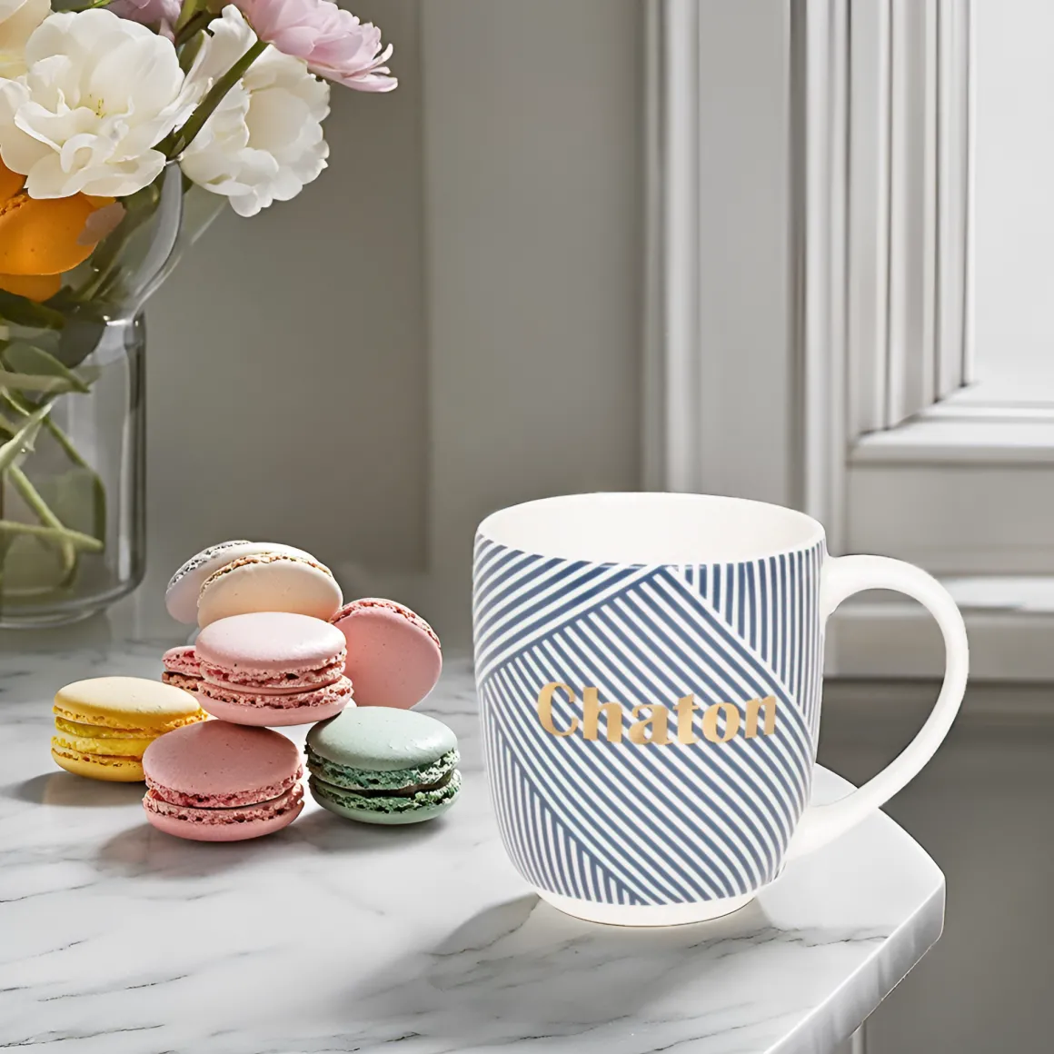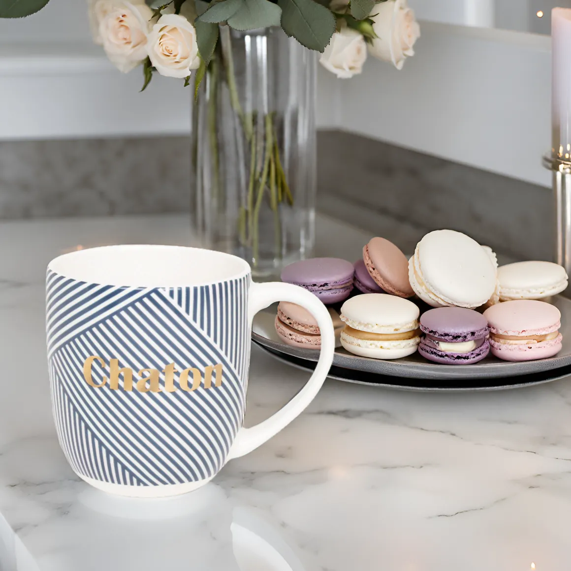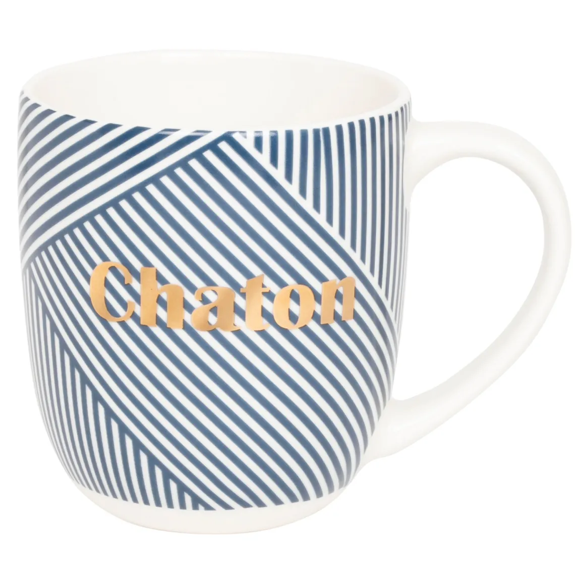 - Message à l’or à chaud inscrit sur le mug : Chaton