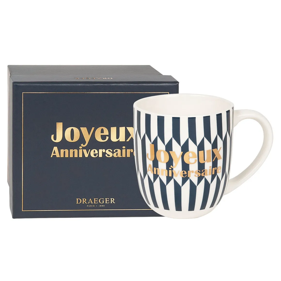 - Message à l’or à chaud inscrit sur le mug : Joyeux anniversaire
