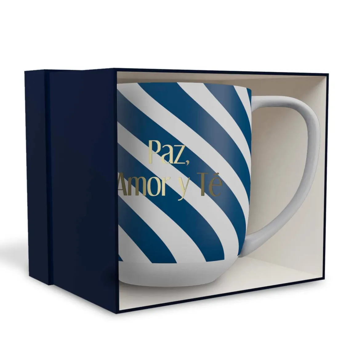 - Message à l’or à chaud inscrit sur le mug : Paz, Amor y Té (Paix, Amour et Thé en espagnol)