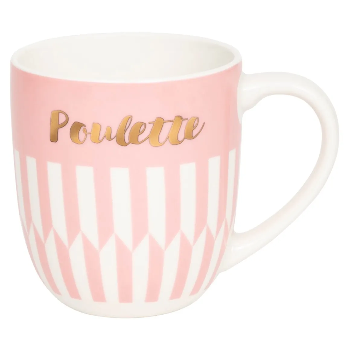 - Message à l’or à chaud inscrit sur le mug : Poulette