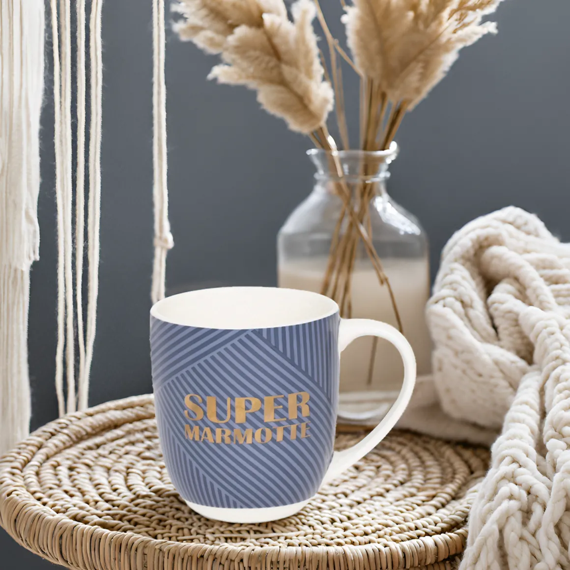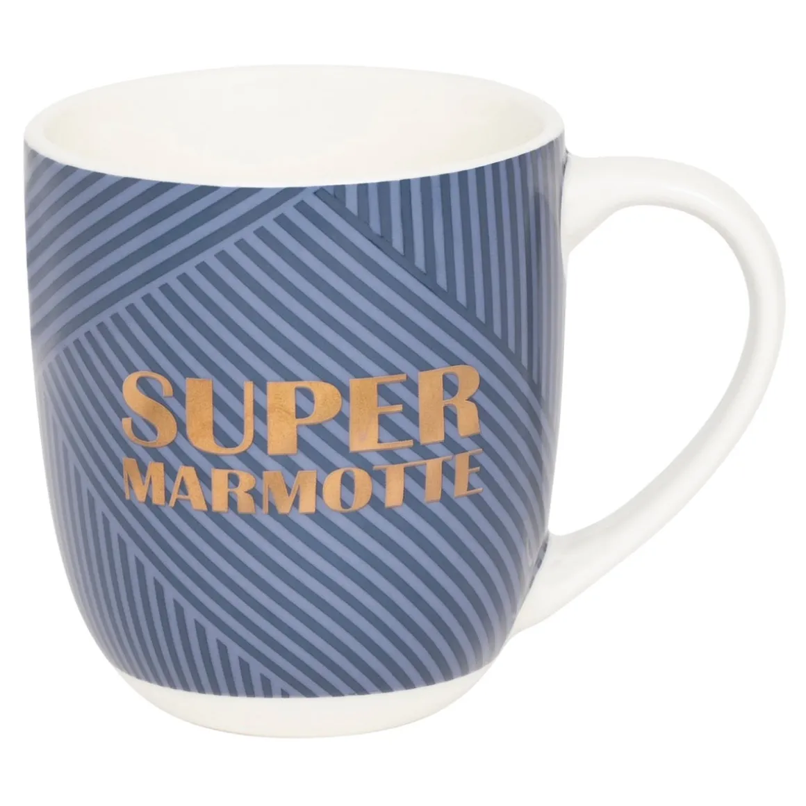 - Message à l’or à chaud inscrit sur le mug : Super marmotte