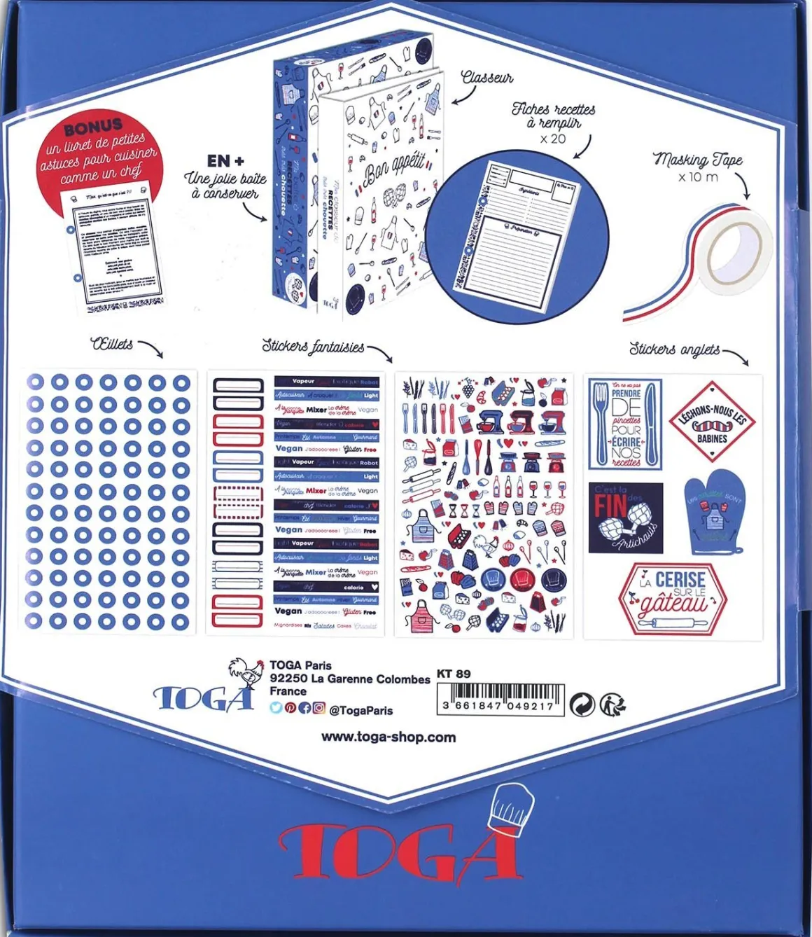 - Ce kit contient : 1 classeur de recettes de 17 x 22 cm avec une couverture d’une épaisseur de 2 mm
