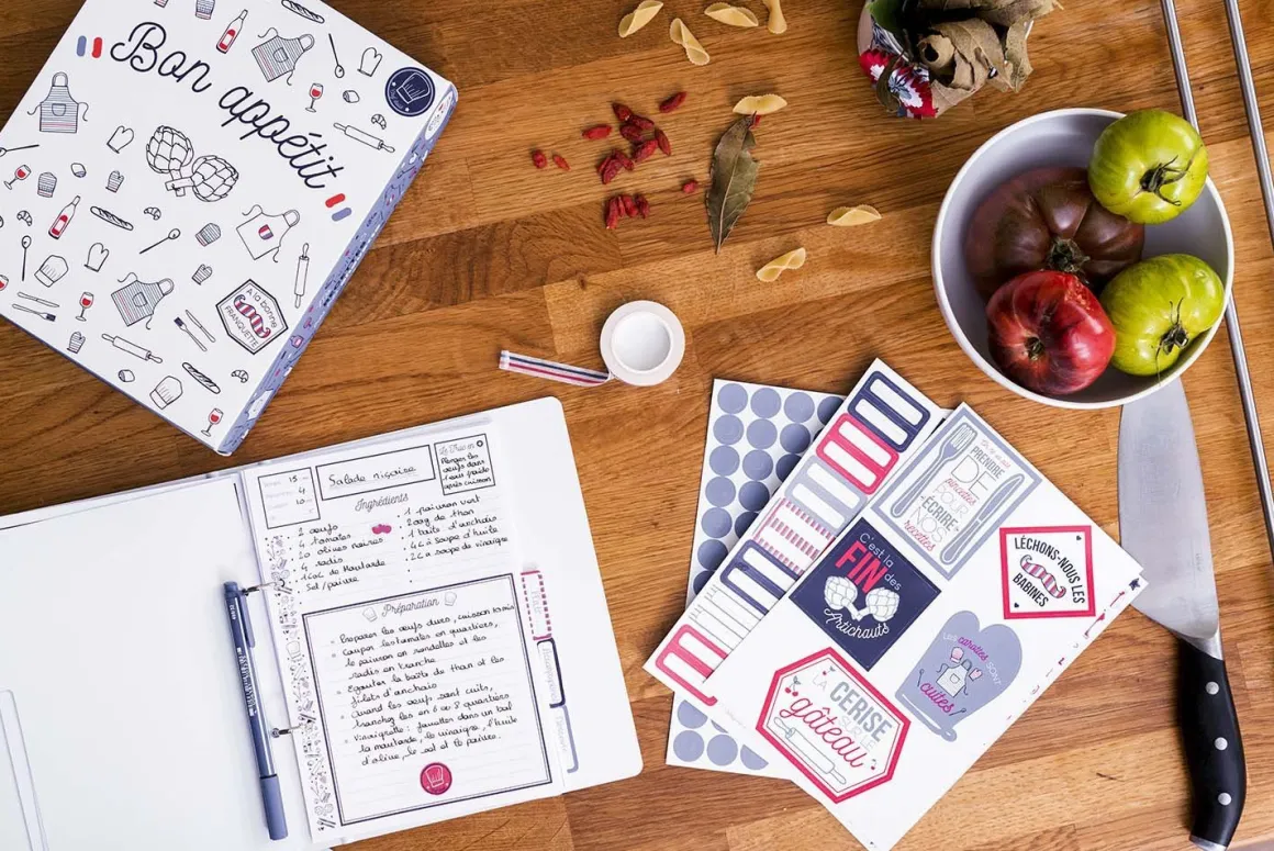 Ma Boîte à Recettes Frenchy, c’est un kit complet pour classer toutes ses fiches de recettes préférées. Bœuf bourguignon, tartiflette, blanquette de veau. Tous les grands classiques de la cuisine française seront réunis dans un seul et même carnet ! Ce dernier a été réalisé sur le thème de la France dans une ambiance chauvine, décalée et affective avec des expressions et des icônes françaises incontournables. L’ensemble du kit est imprimé en bleu, blanc et rouge. Un petit plus : la boîte fermée dans laquelle est vendu le kit et décorée sur le thème de la collection, que vous pourrez garder pour y ranger tout ce que vous voulez !
