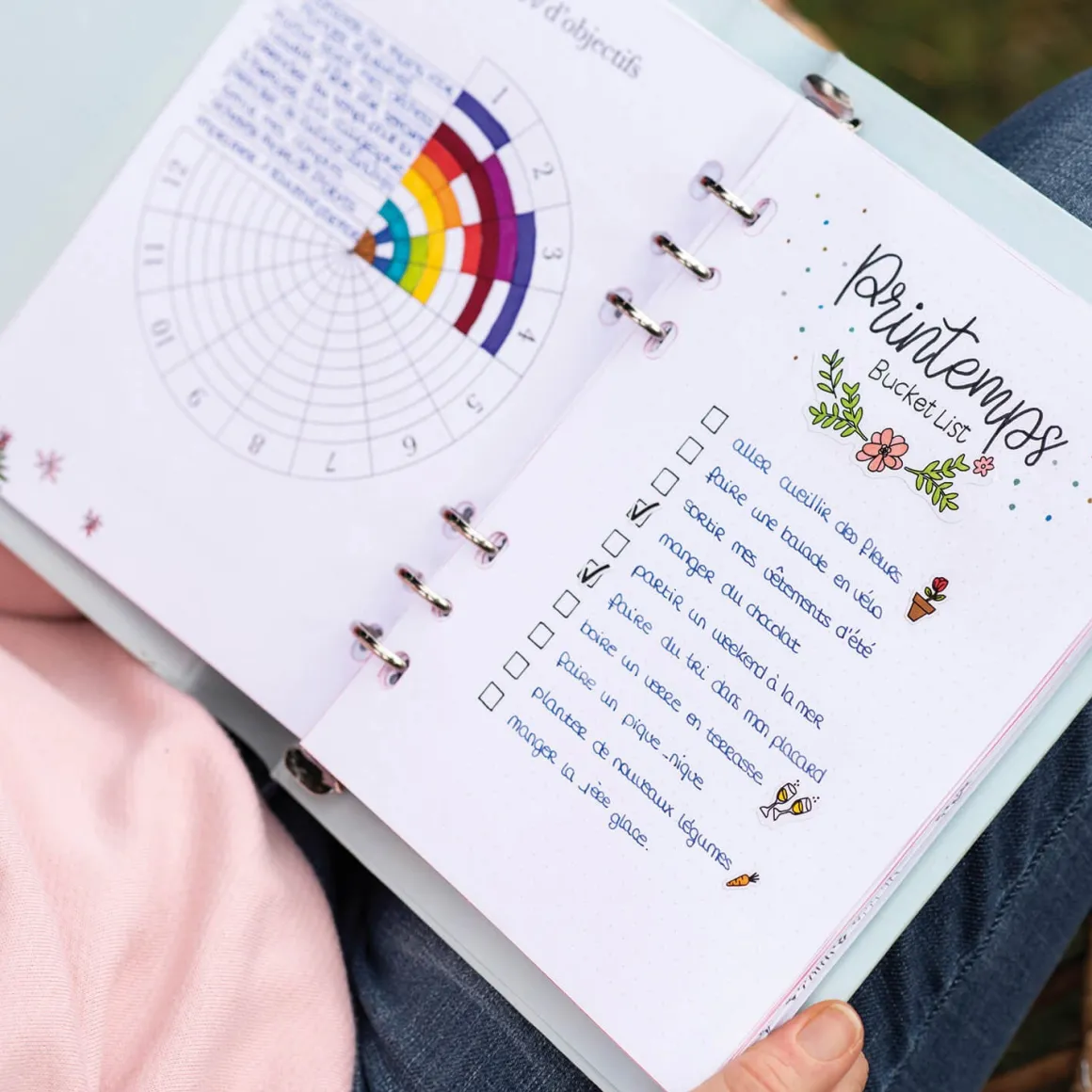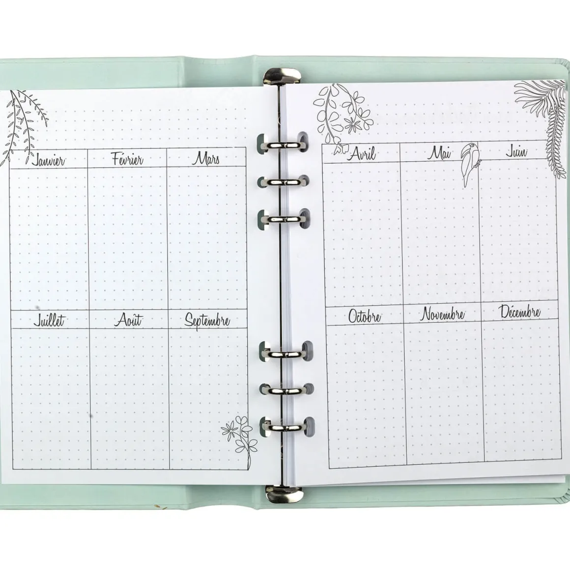 - 1 classeur avec 40 pages à points et 88 pages préremplies (pages annuelles, mensuelles, hebdomadaires et trackers)