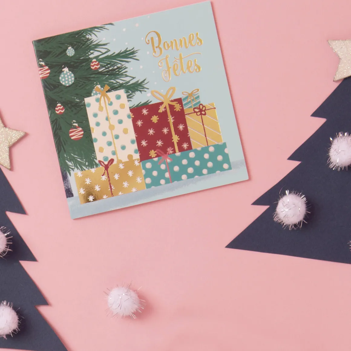 - Message imprimé à l’or à chaud : Bonnes fêtes.