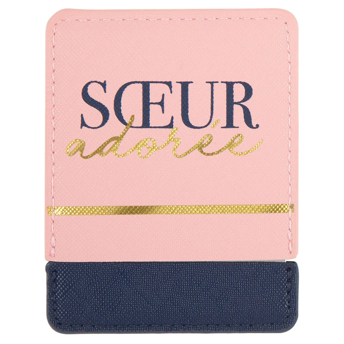 Faites plaisir à votre sœur en lui offrant ce joli miroir de poche illustré du message “Sœur adorée”. C’est le cadeau idéal pour son anniversaire ou sans occasion particulière, pour lui montrer à quel point vous tenez à elle ! Petit et pratique, elle pourra l’emporter partout avec elle.