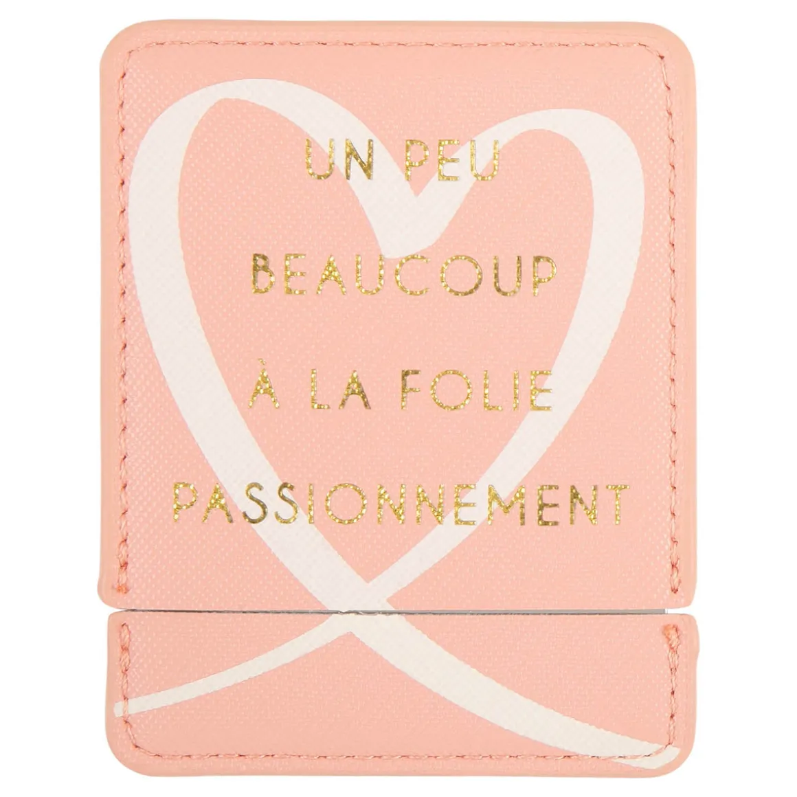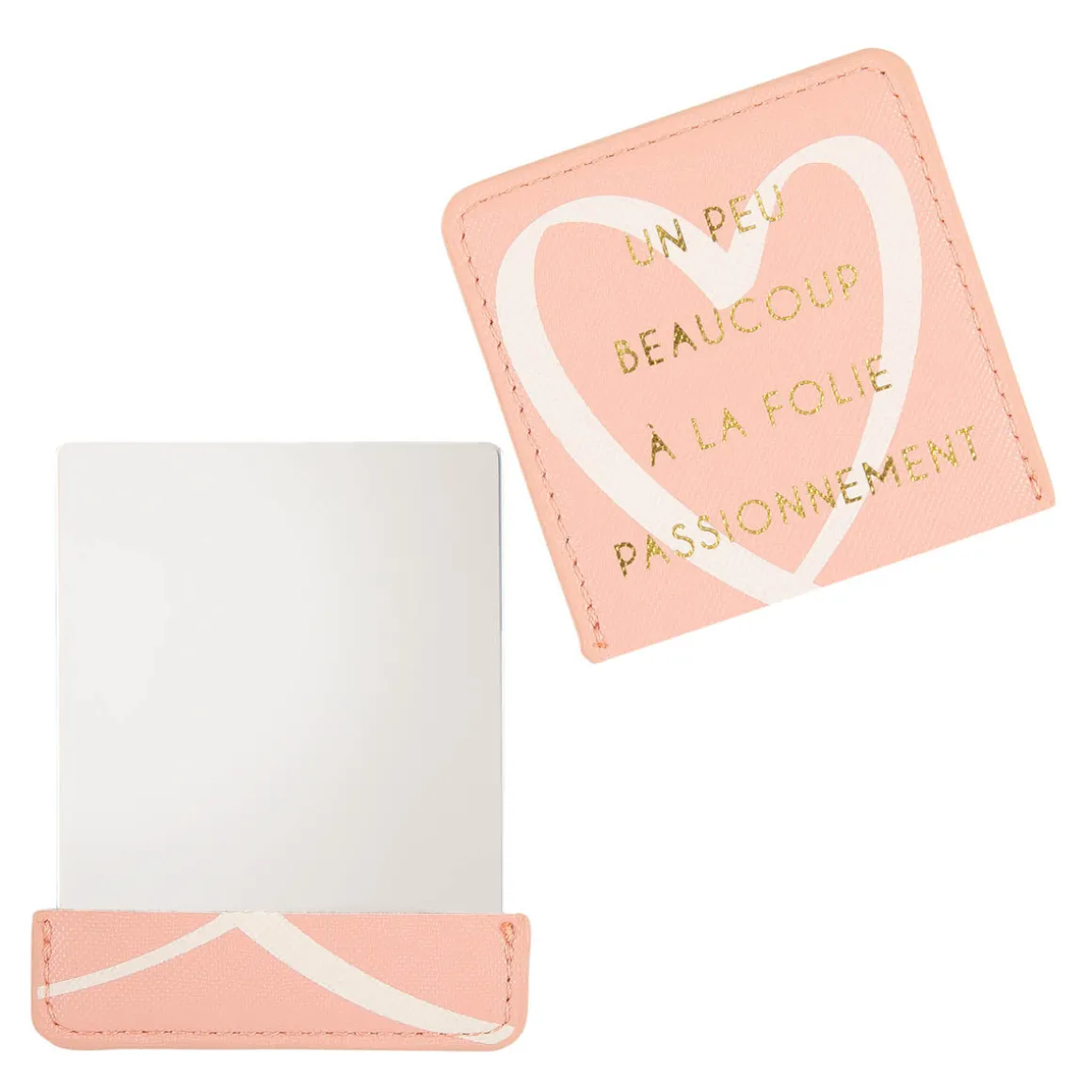 Découvrez notre miroir de poche illustré du message « Un peu, beaucoup, à la folie, passionnément ». Il sera idéal à offrir à votre amoureuse ou à toute personne chère à votre cœur. Quand elle l’utilisera, elle se rappellera à quel point vous tenez à elle. Un cadeau pratique et plein d’amour à offrir pour Noël, un anniversaire ou sans occasion particulière !