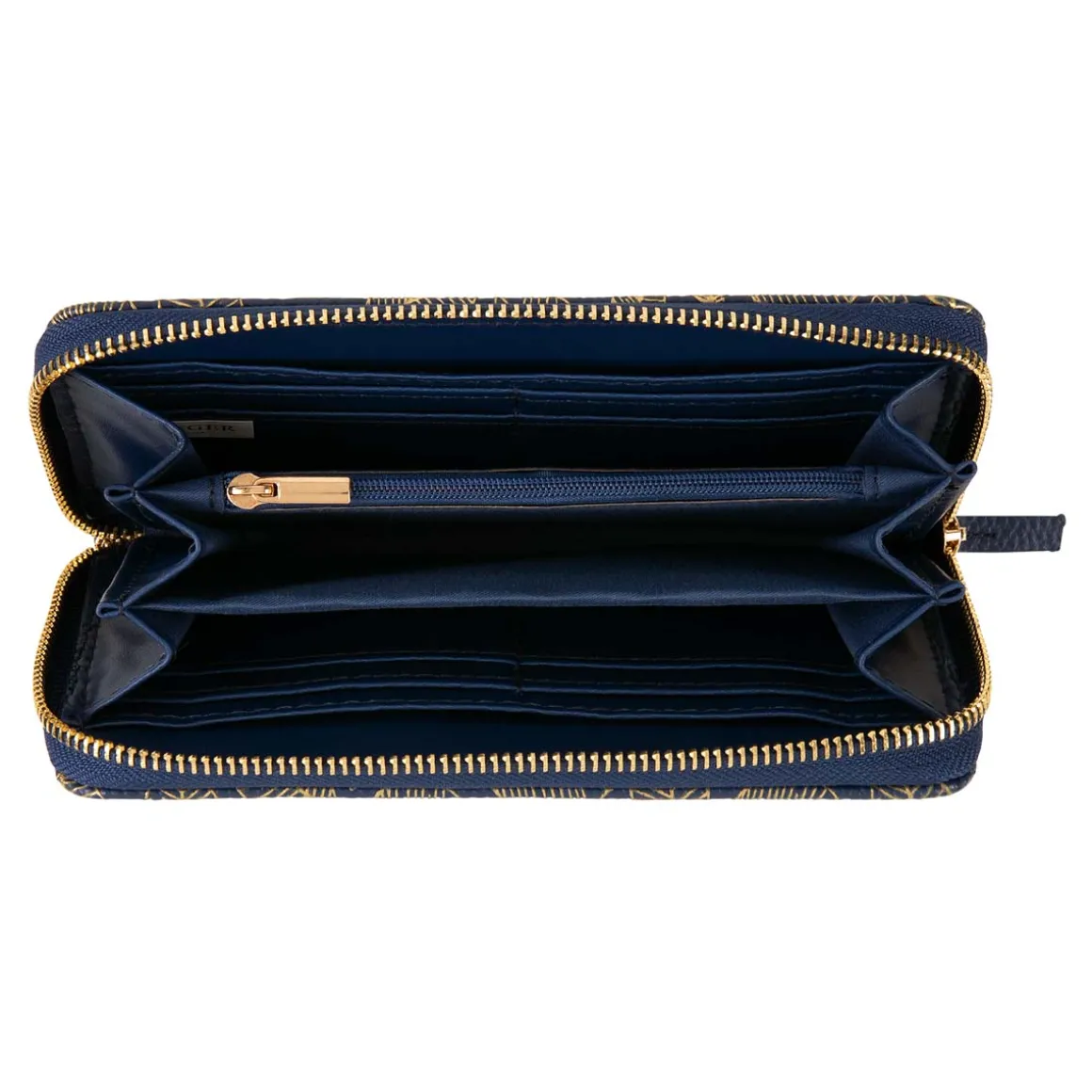 Portefeuilles*Draeger Paris Grand portefeuille femme – feuilles dorées – bleu marine